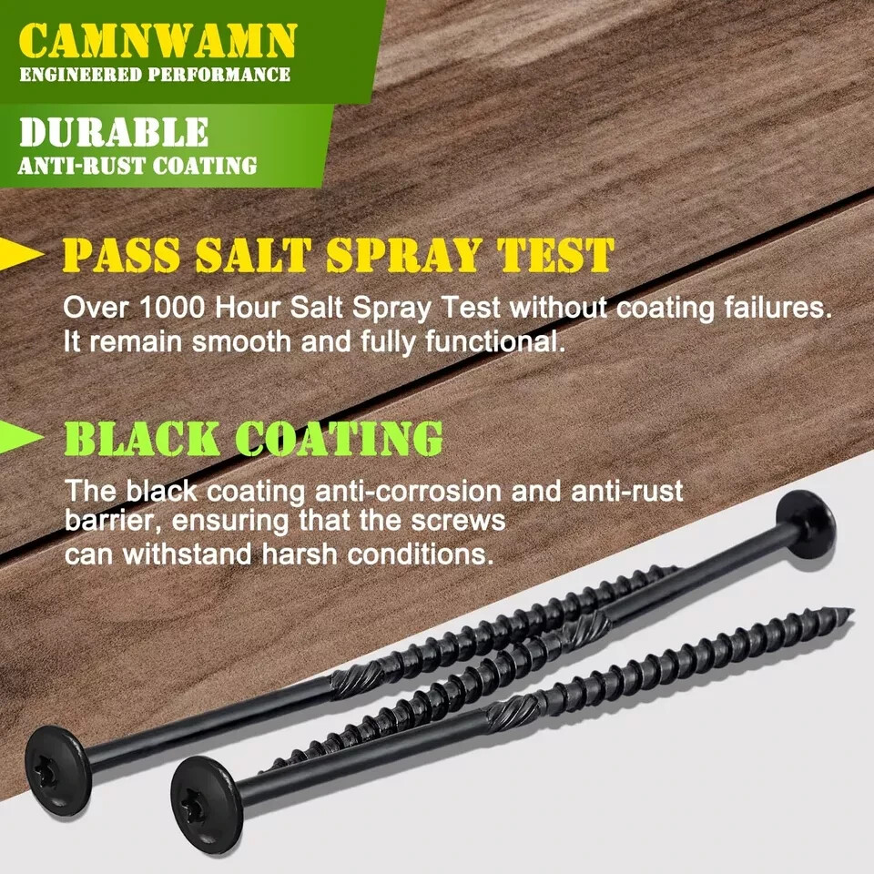 【DIMENSIONS】 - Thread Diameter 0.171" - Head Diameter 0.55" - Length 3" - Use with T30 Star Bit. 【PREMIUM QUALITU】 - These Heavy-Duty wood screws are made of high-quality alloy steel, offering strength and durability, They're capable of withstanding considerable weight and pressure without bending, rusting, or breaking, making them ideal for heavy duty applications. These screws passed the 1200 Hour Salt Spray Test without coating failures. it remain smooth and fully functional even after prolonged exposure to the elements; They can endure and resist the rusting effect of sun and rain. 【KNURL THREAD & SELF-TAPPING】 - The knurled shank significantly reduce drill torque requirements, and the deep, sharp threads allow easy drilling into the wood without damage. The extra sharp point makes screwing a breeze, reducing the need for pre-drilling and saving you time and effort. 【MODIFIED TRUSS WASHER HEAD & STAR DRIVE】The modified truss washer head design of our structural lag screw guarantees a flush and neat finish, enhancing the overall appearance of your woodworking creations. Featuring a T30 star drive style, these wood screws a safe and efficient fastening process without slipping.