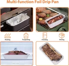 50-Pack Blackstone Griddle Accessories 5017 Grease Cup Liners, Aluminum Foil Drip Pan Grease Catcher Cup Liner for Blackstone 17, 22, 28, 36 Inch Griddle, Disposable Grill Grease Tray Perfect Fit : Each grease cup liner measures 8 x 3 x inches and fit the grease tray on your Blackstone griddles 28 inch, 30 inch, and 36 inch. These Blackstone 5017 drip pan liners for the Blackstone 22 and 17 inch models will require you to bend the liners slightly to fit properly No More Messy Grill : The grill drip tray is the perfect accessory for your grease catcher. Specifically designed to collect grease and drippings from cooking delicious food on your gas grill for a clean, mess-free grilling experience Make Cleaning A Breeze : Simply fill the disposable foil drip pan liner and collect the grease and food residue, and once you're done, you can throw it away for a new drip tray, helps with easy cleanup after cooking and seasoning. Set of 50 drip pans to last all Season, price point - a fantastic value Durable AND Space-saving : These drip pan liners are made of high quality aluminum foil, sturdy, heavy-duty, won't break easily, eco-friendly and 100% recyclable. The aluminum drip pans are also stackable to help you save shelf and countertop space. Lightweight and easy to carry, they are a great addition to your outdoor grill Multipurpose : Absorbs and reflects heat more efficiently, withstands extremely high temperatures without warping or melting, perfect for use in the oven or on the grill. Our grease cup liner can also be used in ovens and freezers, ideal for preparing food or preserving food before you get ready to grill. Great for baking, barbecues, grilling, beach, camping, picnics, parties and more