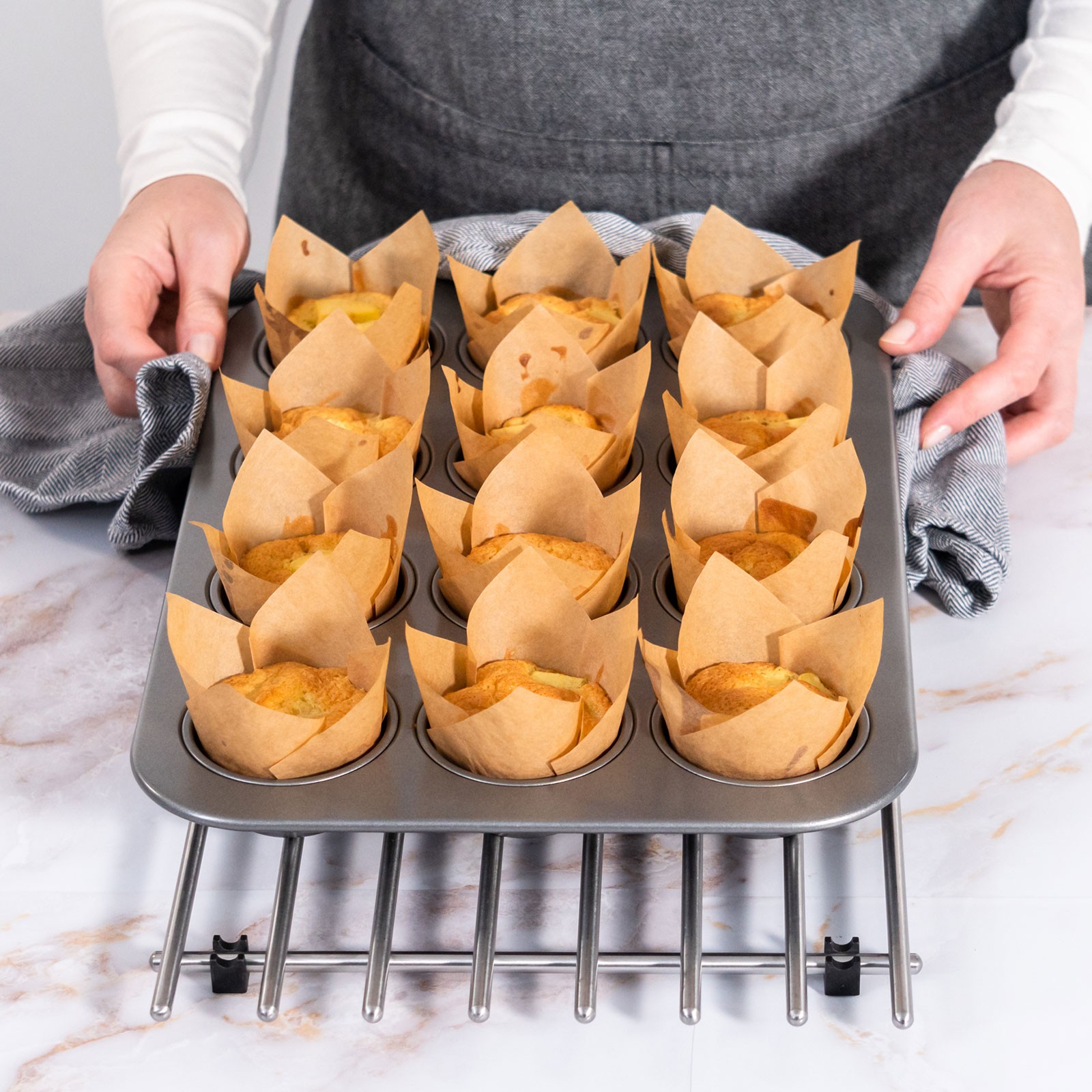 50-Pack Tulip Cupcake Liners, Greaseproof Paper Baking Cups[White Lettering]