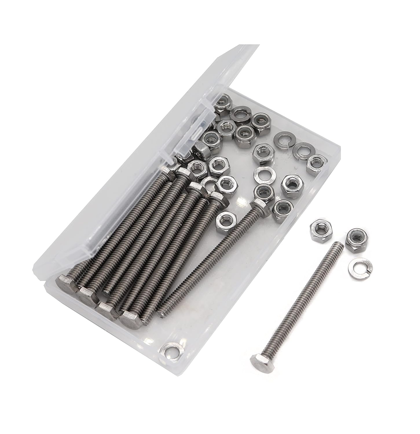 This kit is a lifesaver for DIY projects! The 304 stainless steel hardware feels sturdy and corrosion-resistant. Love that it includes bolts, nuts, flat washers, and spring washers—everything fits together perfectly. The 3" length is versatile, and having 10 complete sets means I always have spares. Great value for the price, highly recommend for anyone needing reliable fasteners!