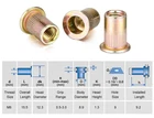 SIZE AND QUANTITY -- The size of these rivet nut is M6 metric. Rivet Range: 0.5 – 3.0mm Total quantity is 50Pcs. HIGH QUALITY MATERIAL -- Made of zinc plated carbon steel material, the rivet nuts have high hardness and great corrosion resistance, which are durable and non-deformable. Most importantly, they are non-toxic and pollution-free environmentally friendly products. REASONABLE DESIGN -- Our rivet nuts are knurled having flat and deep thread, which are easy to fix and anti-slip effective. Besides, you will appreciate their appearance with even pitch and smooth surface without burrs. EASY TO USE: The operation process is simple and labor-saving, saving your time and energy. You can choose a special rivet nut tool to fix the rivet nut according to the riveting strength and size. PRODUCT APPLICATION -- It is usually applicated in various metal sheets, pipes and other manufacturing industries, and widely used in the assembly of electromechanical and light industrial products such as automobiles, aviation, railways, refrigeration, elevators, switches, instruments, furniture, and decoration.