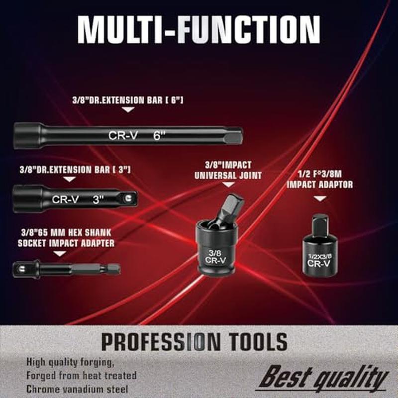 You may also like Slam Dunk Big Ball Pit Inflatable Basketball Hoop and Balls for Kids Ages 3-6 43.22 USD 45.49 USD Free shipping 5% off Recycled Shipping Boxes 30 Count Eco-Friendly Corrugated Medium Large Items New 37.54 USD 39.52 USD Free shipping 5% off Squirrel Proof Bird Feeder Home Style Easy Fill Adjustable Springs 8lb New 45.05 USD 47.42 USD Free shipping 5% off Walk-Through Pet Gate W/ Small Door Extra Wide Pressure Mount Metal Safety New 49.39 USD 51.99 USD Free shipping 5% off Adjustable Foldable Portable High Chair Kids Easy Storage Wipeable Seat Pad New 74.09 USD 77.99 USD Free shipping 5% off 2-in-1 Kitchen Stool Learning Tower Step Stool Anti-Slip Safety Bar Kids New 44.46 USD 46.8 USD Free shipping 5% off Heavy Duty 120ft Extension Cord 16Gauge 2Prong Water Resistant Outdoor Use 40.66 USD 42.8 USD Free shipping 5% off 100ft Mounted Resin Hose Reel Wall Mount Easy Storage Durable Garden Tool New 63.23 USD 66.56 USD Free shipping 5% off Tactisquatch Dark Roast Coffee K Cups 44 Count Compatible W/ Keurig Machines New 34.5 USD 36.32 USD Free shipping 5% off 100% Premium Whey Protein Powder Strawberry 1.78lbs Immune Support Blend New 28.38 USD 29.87 USD Free shipping 5% off Heavy-Duty Fabric Interfacing Fusible Polyester 10 Yards For Applique Iron-On US 37.57 USD 39.55 USD Free shipping 5% off Bicycle Floor Pump Presta Schrader Dual Pump Head 160 PSI Inflation Tool New 43.18 USD 45.45 USD Free shipping 5% off About this item 3/8" Drive Socket Set 50-Piece / SAE (5/16" - 3/4") & Metric (8mm - 22mm) / Deep & Shallow Impact Socket Set with Case / 6 Points Design / Premium CR-V Steel Exceptional Quality and Durability: This 50-piece 3/8" socket set is crafted from premium chrome vanadium steel, boasting high strength and remarkable durability. The heat-treated sockets have a hardness of over 60HRC, delivering excellent wear resistance and handling extreme torque variations. A phosphate coating on the surface ensures superior corrosion resistance and rust prevention. Clear and Distinguishable Markings: Each piece is laser-etched with markings, allowing for quick identification of sizes even in dim lighting. This saves you time and effort in searching for the right part and trying out different socket sizes. 6-Point Design and Retaining Hole: The 6-point design ensures a perfect fit between the socket and bolt, minimizing wear and extending the bolt's lifespan. The detent hole secures the socket connection, preventing it from slipping off during use. Convenient and Secure Storage: The socket set comes in a sturdy black blow-molded case, specifically designed to accommodate various socket sizes. The case's dual locks prevent accidental opening, ensuring easy storage and minimizing the risk of losing sockets. Material Chrome Vanadium Steel Drive System Spanner Finish Type Oil Rubbed Number of Pieces 50 5ft Foldable Table Indoor Outdoor Portable Sturdy Easy Storage Camping Utility 61.71 USD 64.96 USD Free shipping 5% off 52" Remote Control Oscillating Pedestal Fan Adjustable Height W/ Timer Safety US 86.44 USD 90.99 USD Free shipping 5% off Dry Cat Food Urinary Tract Health High Protein Low Magnesium Kibble 16lb New 42.58 USD 44.82 USD Free shipping 5% off Clear Plastic Storage Bins W/ Lids Stackable Durable Totes 6Pk Organization New 36.9 USD 38.84 USD Free shipping 5% off Plastic Round Step Trash Can 1.5 Gallon Touchless Lid Ideal Small Spaces New 18.29 USD 19.25 USD Free shipping 5% off Adjustable Counter Height Faux Leather Barstool Set of 2 Ergonomic Swivel Design 98.25 USD 103.42 USD Free shipping 5% off 12-Piece Square Dinnerware Set Vitrelle Glass Durable Dishwasher Safe Easy Clean 56.64 USD 59.62 USD Free shipping 5% off 3-Tier Elevated Wooden Garden Bed Planter Veggies Flowers Herbs Outdoor Use 98.79 USD 103.99 USD Free shipping 5% off Flannel Lined Sleeping Bag 35F Rectangle Lightweight Camping Hiking Outdoor New 35.66 USD 37.54 USD Free shipping 5% off Creamy Lickable Cat Treats Tuna Variety 20 Tubes High Moisture Low Calorie New 16.17 USD 17.02 USD Free shipping 5% off Caribbean Aquarium Gravel 25lb Decorative Substrate Natural Habitat Enhancement 27.32 USD 28.76 USD Free shipping 5% off Recycled Shipping Boxes 11x7.5x5.5 inches 30-Count Medium Shipping Containers US 24.89 USD 26.2 USD Free shipping 5% off