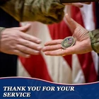 About this item HOME OF THE FREE, BECAUSE OF THE BRAVE Veterans Thank You for Your Service Challenge Coin: 1.57inch/4cm in diameters, packaged by a transparent display case. Fine carving military challenge coin is made of zinc alloy plated with antique bronze materials, special designed for the one who fights for this country. Meaningful for soldiers and veterans or someone who have served for United States military: Army, Navy, Air Force, Marine Corps, Armed Forces, Coast Guard, also suitable for patriots. Perfect gift choices for Veterans Day, Independence Day, Memorial Day, Military Retirement, Welcome Home, Birthday, Christmas and Thanksgiving. Amazing Treasure Still wondering what to add in a collection? A special and long-last memory gift? Or the connection between you and your most important one. You can always find your own treasure here. Packing Each coin will be packed up individually with a plastic case suit in opp bag. Shipping We'll start shipping as soon as possible within 2 business day normally. Tracking will be available after. Feedback We try to make sure ALL customers are satisfied with our services, if you do, a POSITIVE feedback is appreciated, thank you very much. And we always leaving a positive one for customer when item is delivered successfully. Contact Us Feel free to contact us at any time, we're happy to help. You can reach us by eBay or E-mail. Have a nice day!