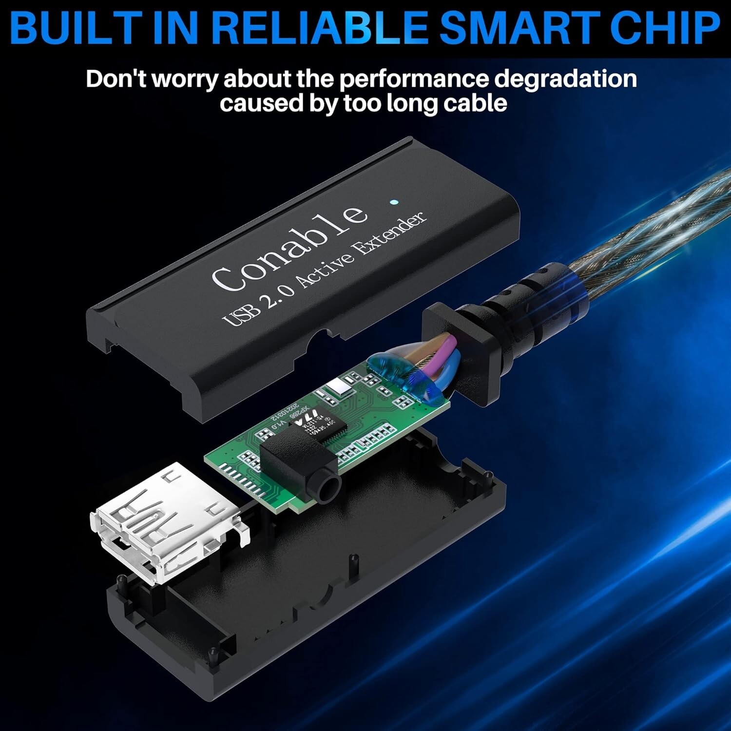 24ft USB 3.0 Extension Cable with Signal Booster - Male to Female High Speed