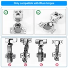 Specification: Color: white Material: plastic Product Size: 1.1x1.2cm / 0.43x0.47inch Package details: 50 x cabinet hinge restriction clips Note: Due to manual measurement, the size and weight may have a certain error. Due to the difference between different monitors, there may be a slight color difference existed. Package Content: You will receive 50 pieces of white cabinet hinge restriction clips, which can meet your daily use and needs. They will provide new solutions for restricting opening angles of whole house cabinet doors. Good Protection: These hinge angle restriction clips help restrict the opening angles to 86 degree, thus cabinet doors won't open too much to break into adjacent walls, other cabinets or appliances. Good Quality: These hinge angle limiters are made of premium plastic, tough and strong, concise and easy to install, not easy to fall off or break, serving you for long term use. They are small enough, thus can be hidden in cabinet door to protect your cabinet doors. Easy to Install: Firstly, remove hinge from cabinet door, then snap the cabinet restrictor clip into place. No other tools required, easy to install. Warm Reminder: Our products are only compatible with Blum 38C315B3 American cabinet hinges (frameless type). Please note that our product isn't sponsored or endorsed by the brand it fits, including Blum.