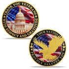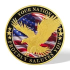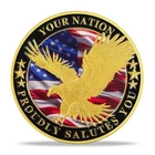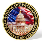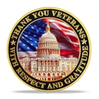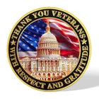 Item Details Description : Honor the service and sacrifice of our veterans with this exquisitely crafted "Thank You Veterans" Commemorative Coin. Featuring symbolic American imagery, this coin is a powerful tribute to the men and women who have served our nation. Striking Design : The front of the coin proudly displays a detailed 3D image of the U.S. Capitol set against the backdrop of the American flag, symbolizing the heart of the nation. The edge is inscribed with "THANK YOU VETERANS WITH RESPECT AND GRATITUDE, " expressing deep appreciation for our veterans' dedication and sacrifice. Inspirational Reverse : The back features a dynamic portrayal of a bald eagle in flight, the national bird of the United States, symbolizing freedom and strength. The background includes the American flag, enhancing the patriotic spirit of the coin. The inscription "YOUR NATION PROUDLY SALUTES YOU" conveys respect and national pride, acknowledging the contributions veterans have made toward freedom and security. Premium Quality : Crafted from high-quality zinc alloy and plated in gold , this 40mm coin is 3mm thick , with high-relief embossing that brings each detail to vivid life. Perfect Collectible or Gift : Ideal for veterans, history enthusiasts, or coin collectors, this commemorative coin serves as a meaningful keepsake to honor the bravery and service of military personnel. Enhanced Significance : Combining iconic national symbols with a message of gratitude, this coin not only serves as a collector's item but also as a gesture of acknowledgment and thanks to those who have worn the uniform. Celebrate and remember the valor of our veterans with this beautifully designed commemorative coin, now available on eBay. It's a small token of gratitude for their immense contributions and a piece that will be cherished for generations. Amazing Treasure Still wondering what to add in a collection? A special and long-last memory gift? Or the connection between you and your most important one. You can always find your own treasure here. Packing Each coin will be packed up individually with a plastic case suit in opp bag. Shipping We'll start shipping as soon as possible within 2 business day normally. Tracking will be available after. Feedback We try to make sure ALL customers are satisfied with our services, if you do, a POSITIVE feedback is appreciated, thank you very much. And we always leaving a positive one for customer when item is delivered successfully. Contact Us Feel free to contact us at any time, we're happy to help. You can reach us by eBay or E-mail. Have a nice day!