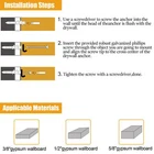 510PCS Drywall Anchors and Screws Assortment Kit, 265 Plastic Wall Anchors and 265 Flat Head Screws, 6 Sizes with Self Drilling Anchor, Wall Hanging Kit for Picture, Curtain Rod, Picture Hangers 6 SIZES FOR VARIOUS PROJECTS – This picture hanging kit contains abundant size options, which are: #6*1",#7*1",#6*1-1/5",#8*1-3/5",#8*2-2/5" and self tapping drywall anchors, all clearly assorted in a compact organizer box. With these most widely used sizes of plastic wall anchors and galvanized Philips screws, you can handle almost all hanging projects like a pro. PREMIUM QUALITY FOR THE BEST PERFORMANCE – All the plastic wall anchors in this hardware assortment kit are built with high-quality brand-new materials. The ribbed drywall anchors are made of nylon and PE compound material to ensure high strength, wear resistance and anti-age properties. The Phillips screws are made of high-carbon steel and galvanized for strong hardness and rust resistance. CLEARLY ASSORTED FOR EASY SELECTION – The Picture Hanging assortment kit come with a well-built clear plastic organizer box, which keeps screws and plastic anchors of each sizes neatly and clearly, allowing you to access the one you need easily by a glance. The compact organizer saves you bunch of time searching and takes up no space in your house. WIDELY APPLICABLE – The ribbed wall anchors in abundant size selections can help you hang mirror, curtain rail, decorative pictures, photo frames, towel rack and lightings on various wall surfaces, such as brick walls, concrete walls, dry walls and wooden walls. Thanks to its reliable quality and durability, you can use it to secure your hanging objects with confidence. WHAT YOU GET – You will receive 265 plastic wall anchors, 265 galvanized Philips wood screws and 1 attractive clear plastic organizer boxes. Each product purchased from us comes with a one-month free replacement and service, making your shopping experience hassle-free. If you have any question of you unhappy with anything, please don’t hesitate to contact us! Shipping We offer FREE shipping on all orders! We ship within Three business days of payment, usually sooner. We use a selection of shipping services such as UPS, FedEx, USPS etc. We only ship to the lower 48 states, no APO/FPO addresses or PO Boxes allowed. Local pickups and combined shipping options are not provided at this time. Return You can return a product for up to 30 days from the date you purchased it. Any product you return must be in the same condition you received it and in the original packaging. Please keep the receipt. Payment We accept payment by any of the following methods: PayPal Please pay as soon as possible after winning an auction, as that will allow us to post your item to you sooner! Feedback Customer satisfaction is very important to us. If you have any problem with your order, please contact us and we will do our best to make you satisfied. Contact Us If you have any queries, please contact us via ebay. We usually respond within 24 hours on weekdays. Please visit our eBay store to check out other items for sale! Thank you for shopping at our store.