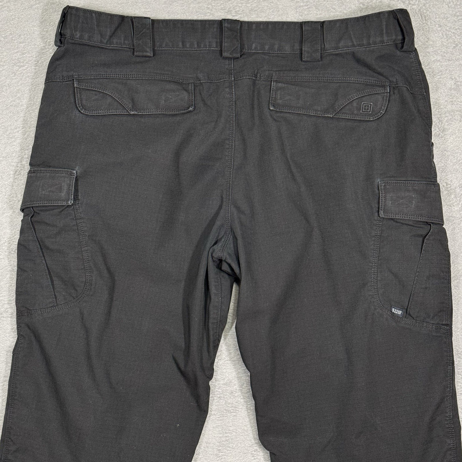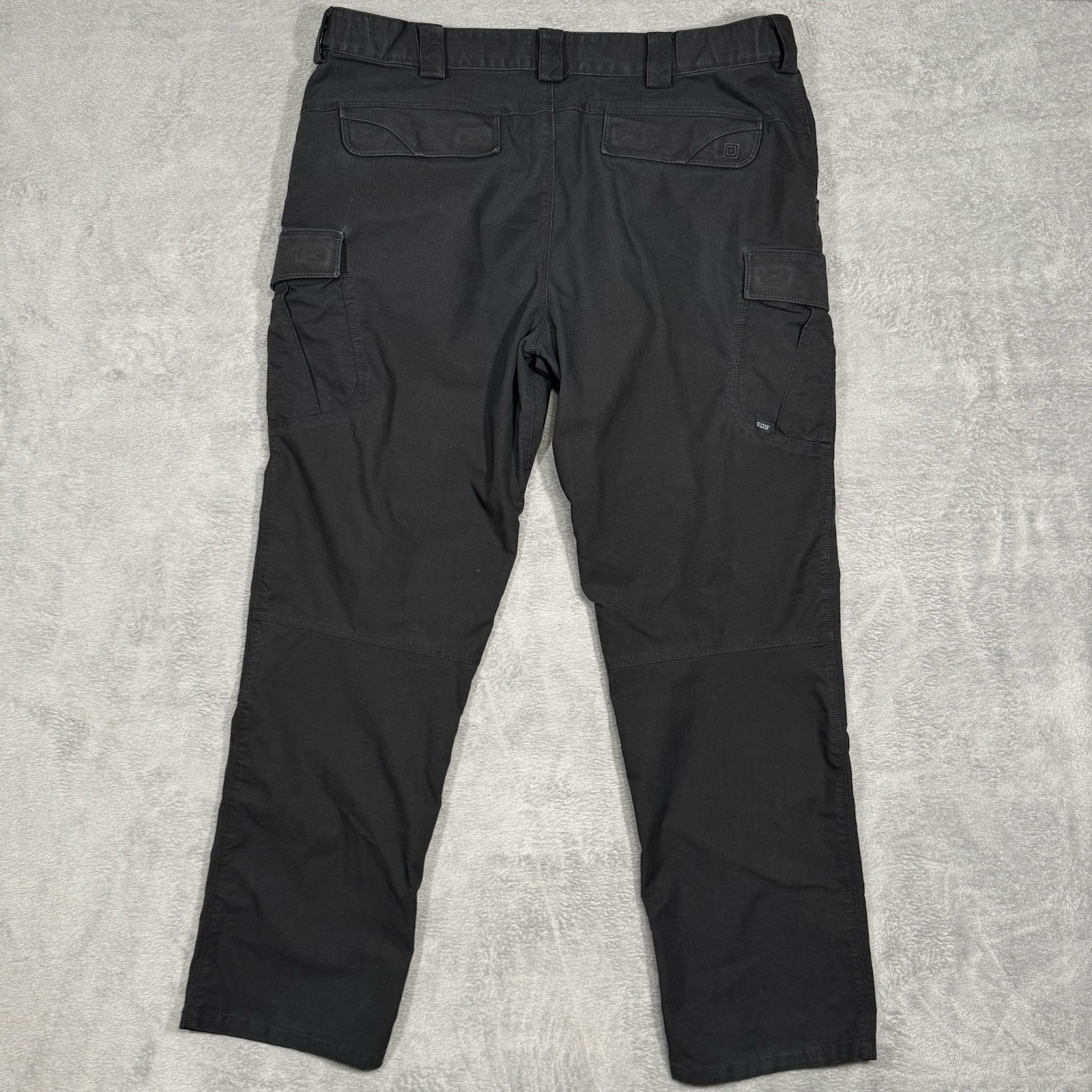 Men’s 5.11 Tactical black ripstop cargo pants. Durable 65% polyester / 35% cotton Taclite fabric. Multi-pocket utility design with cargo pockets, rear flap pockets, reinforced seat/knees, heavy-duty belt loops, YKK zipper. Color: Black. Size: 42x32.5 (measured) Material: 65% polyester / 35% cotton Measurements: Waist 42”, Rise 12”, Inseam 32.5”, Leg Opening ~9”, Thigh ~12” Condition: Great pre-owned condition with light signs of wear. No holes or major flaws.