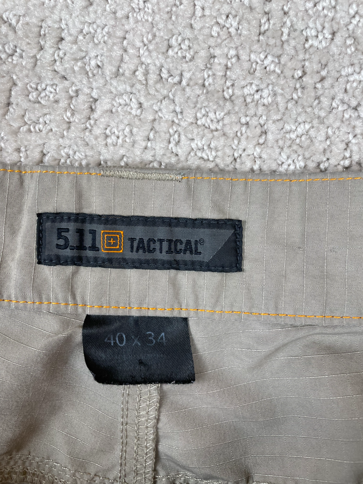 The 5.11 Tactical Pants in men's size 40x34 are designed for work and hiking, making them a versatile and durable choice. Featuring a zip closure, cargo pockets, and a mid-rise fit, these ripstop pants in beige offer both functionality and style. The cotton fabric is machine washable and the straight leg design provides a comfortable fit. Embrace the army theme with this reliable and practical garment from 5.11 Tactical.