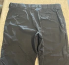 These 5.11 Tactical Pants are designed for men in a size 40 with a relaxed fit. Made of durable canvas fabric in black, they feature a chino style with a straight leg and a 5-pocket design for storage. The pants have a flat front with belt loops and a zipper closure. Ideal for security work or outdoor activities, they are suitable for all seasons and can be machine washed for easy care. Personalization is not available for this item. These pants are in good preowned condition, with little sign of wear. Please see ALL photos for a better idea on condition, any measurements, or details to the pants.