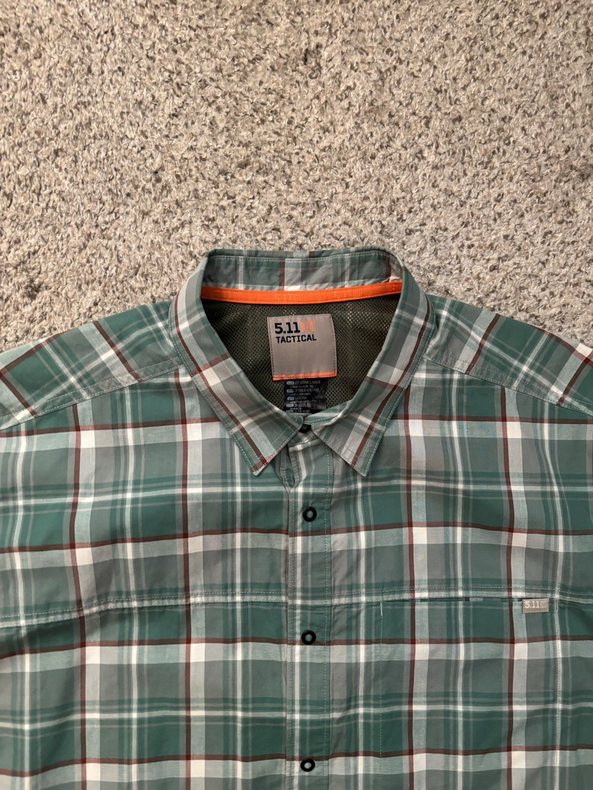 This 5.11 Tactical shirt is a versatile and practical addition to any man's wardrobe. With its green plaid pattern and short sleeves, it can be worn casually or in a more formal setting. The snap button closure and collared neckline add a touch of sophistication, while the polyester and spandex material ensures a comfortable fit. Machine washable and suitable for all seasons, this button-up shirt is a must-have for any modern man on the go.
