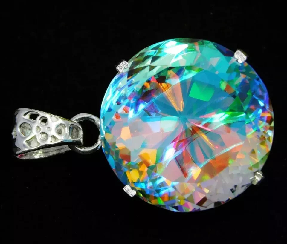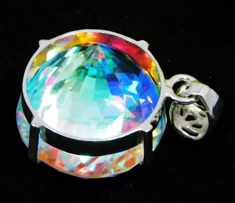 ## 51.55 Ct Natural Mystic 925 Solid Silver Rainbow Round Pendant Loose A+ Gemstone ## ## CERTIFICATE INCLUDED ## GEMSTONE LENGTH/WIDTH:- 21.53 mm / 21.53 mm GEMSTONE DEPTH:- 11.59 mm TRANSPARENT AND Loupe CLEAN GEMSTONE BRILLIANT Round CUT **CERTIFICATE INCLUDED** (GEMSTONE FULL INFO CAN BE FOUND IN INCLUDED CERTIFICATE ) Shipping Policy All Local shipments send through "Speed Post" By India Post. All International Shipments send through India Post (2-3 Weeks). For Express Shipping please Contact us by eBay Message Payment Policy Immediate Payment is required after the Winning Bid Item will be shipped immediately on the same or next business day of receiving full payment Return Policy 100% Safe Transaction and Satisfaction guarantee. We are available 24 100% Money Back Guarantee if not satisfied. Feedback Policy Since your feedback is very important to our business development, We plead you to leave a positive feedback for any transaction that you had been appreciation. If you are satisfied with our product and service. If you are not satisfied with the product that we are provided, please kindly contact us before leaving any negative or neutral feedback. We surely can 100% resolve of your problems that you have to concerns. We are very interested to have your complete satisfaction and we will always do our best to solve any problem. Because, your Satisfactions our Top Priority. Seller ratings. You can rate our transaction from one to five stars. If you are satisfied with our service. But if don't please contact and tell us why you are not happy with your purchase. As an ebay strictly policy rule. We respect and honor for buyer protection rule. By concern every problem that maybe occur and take it very seriously. Please assured in my service we will give the best guardianship for you every times and Very happy to service you in honest. Our team will be glad to assist you and give you easy and fast solutions. We always provide Positive Ratings and Excellent feedback to all paying buyers. We leave positive feedback after every successful transaction. We hope you enjoy your purchase with our best provided foryou. And hope you save my store in your save seller or consider us for a future purchases. *** Please contact us before leaving any neutral or negative feedback. We're confident we can resolve any issues to your satisfaction.***** Have a Nice Day !!!
