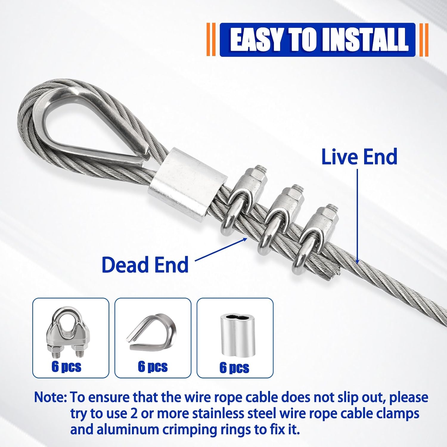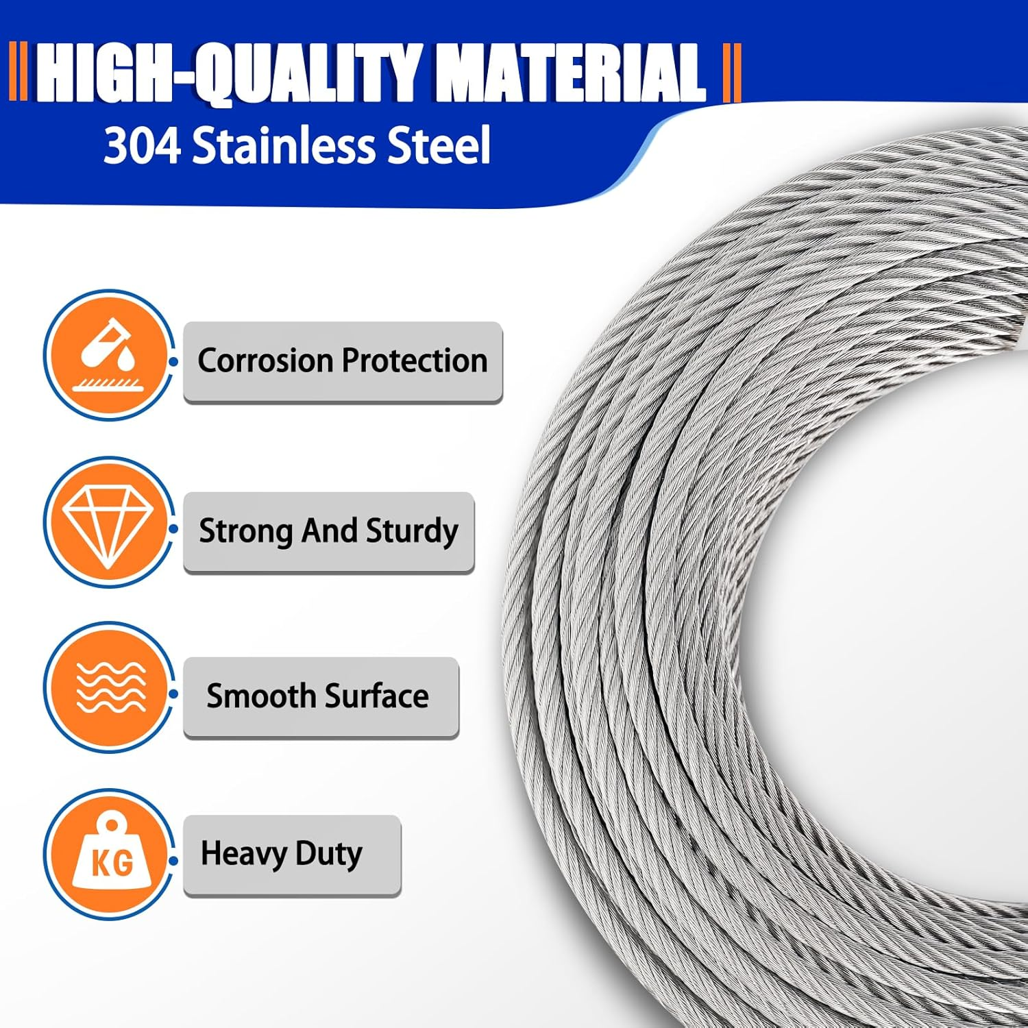Store New Arrivals Add to Favorite View Feedback Contact 5/16 Stainless Steel Cable 25Ft Steel Cable with Loops 7 * 19 Strand Steel Rope for Zipline Boat Lifts Winch Cable Cable Wire Fence Heavy Duty Wire Rope Kit with Clamps and Thimbles Description Item model number WF-012 Unit Count 25.0 Feet Style 25FT Number of Items 1 Color Stainless Steel Material Stainless Steel Tensile Strength 9000 Pounds Item Weight 4.96 Pounds Recommended Uses For Product Home applications: balcony railings/plant climbing frames/fence lines/garden decorations/light strings/suspension, Outdoor applications: equipment towing/mechanical lifting operations/zip lines/rock climbing walls. Finish Type Polished Package Dimensions 9.21 x 7.76 x 3.9 inches Size 5/16 Inch (8mm) High-quality material: 5/16 steel cable are made of 304 stainless steel, with rigorous craftsmanship. Each process is strictly carried out in accordance with the process standards, and professional quality inspections are carried out layer by layer. The products produced are corrosion-resistant, rust-free, sturdy and durable, and are suitable for harsh environments such as the seaside. Widely used: 5/16 stainless steel cable are widely used in DIY garden railings, boat deck railings, stair cable railings, dock railings, step handrails, clotheslines, small diameter pulley ropeways, outdoor sports and other projects. Strong and durable: The surface of our 5/16 wire rope cables is treated with high-precision electrolytic polishing, which can not only effectively prevent rust corrosion, no burrs, and protect your hands. Provide safety guarantees for your cable railing hardware,outdoor sports projects, and DIY railing projects, add a touch of elegance and sophistication to your deck or stairs, and enhance the overall spatial beauty and safety of your project. Easy to install: Our 5/16 stainless wire is composed of a 7*19 structure. It consists of 7 strands of steel wire and 19 strands of steel wire rope per strand, safe load capacity is 1800 lbs, maximum load capacity is 9000 lbs. 7x19 strand stainless steel wire rope is the most flexible multi-purpose wire rope with bright surface, easy installation, time-saving and labor-saving, and good effect. Package List: You will get 1 25ft 5/16 stainless steel wire rope with loops , 6 stainless steel wire rope clips, 6 thimbles, 6 aluminum crimping ring sleeves, this is a strong wire rope kit. Product description 25ft Stainless Steel Wire Rope 5/16 Inch, 7X19 Strand Braided Aircraft Suspension Cable, Wire Railing Growglow stainless steel cable railing kit is complete The kit includes 1 100-foot 5/16-inch stainless steel wire rope, single-end double crimping with thimble, 6 stainless steel wire rope clamps, 6 thimbles, and 6 aluminum crimping rings. All parts are well-structured and beautifully made to complete the task well. Growglow 5/16 Inch 304 Stainless Steel Wire Rope Cable Series Features 1. Flexible and moderate size: 5/16-inch diameter wire rope, suitable for situations requiring fine control or medium-weight applications; at the same time, 5/16-inch wire rope is generally more flexible, easy to bend and tangle, and suitable for use in applications that require frequent bending. 2. Good load-bearing strength: The wire rope is composed of a 7*19 strand structure, with a fairly high tensile strength and can withstand a certain load. 3. Wear and corrosion resistance: The 7*19 structure wire rope made of 304 stainless steel has good wear and corrosion resistance, and is suitable for environments with humid and corrosive substances that are often rubbed or in contact with other objects. 4. Simple operation and controllable cost: Due to its moderate diameter, this wire rope is easier to install and operate, suitable for manual or small mechanical equipment; at the same time, moderate diameter wire rope is usually low cost and suitable for applications with limited budgets. Growglow Wire Rope Cable Is Carefully Manufactured, Safe And Reliable High-quality materials plus rigorous craftsmanship Our wire rope is made of 304 stainless steel material with rigorous craftsmanship. Each process is carried out strictly in accordance with the process standards, and professional quality inspections are carried out layer by layer. It has the characteristics of high strength, strong anti-rust ability, strong load-bearing capacity, strong and durable, and can cope with harsh environments. High-strength tensile force The 5/16-inch cable has excellent tensile force, with a measured safe load capacity of 1800 pounds and a maximum load capacity of 9000 pounds. It has strong load-bearing capacity, is strong and durable, and is the preferred accessory for DIY projects and outdoor sports enthusiasts. This wire rope will be suitable for any unique application you can think of. I believe it exceeds all expectations. Growglow Cable Wire Rope Adopts 7*19 Structure, Taking Into Account Flexibility And Strength Characteristics of 7*19 strand steel wire rope The 7*19 strand steel wire rope is made of 7 strands of 19 filaments twisted together. This structure makes the steel wire rope have higher strength and better toughness. Compared with the 7*7 structure steel wire rope, the 7*19 structure steel wire rope is softer and easier to install and use. The material is 304 stainless steel, which will not rust when used outdoors, ensuring its good corrosion resistance. As a flexible component, the steel wire rope has the advantages of light weight, good flexibility, flexible use, ability to withstand impact loads, no noise during high-speed operation, and a sign of broken wire before breaking. The 7*19 strand steel wire rope has high strength and toughness due to its unique structure and material, and is suitable for various workplaces. The 7*19 strand steel wire rope is suitable for a variety of application scenarios due to its high strength, high toughness, easy installation and use, and good corrosion resistance, especially in occasions th