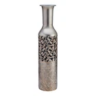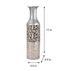 Timeless style meets a modern touch with this Silver embossed decorative vase. Beautifully crafted of metal, this vase features a patchwork embossment with filagree detail. This vase looks great styled alone and when displaying your favorite dried or artificial flowers. For decorative use only; vase should not be used with water. Measures 4.5x4.5x17 inches. INTRIGUING FINISH: This Silver vase features an elegant patchwork embossment with filagree detail DISTINCTIVE DISPLAY PIECE: Use this 17-inch vase for your favorite dried or faux blooms with casual elegance. USE AND CARE: Wipe clean with soft damp cloth, not for use with real flowers. Does not hold water. MEASURES: 4.5x4.5x17 inches METAL: Made of Metal