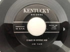 artist Jim Fair label Kentucky 559 title Molly Darling / It Makes No Difference Now record condition VG++ notes 1952 Cincinnati, Ohio country/hillbilly, in nice condition. Grading scale: NM / VG++ / VG+ / VG / VG- / G+ / Poor I combine S&H on multiple orders and have no problem starting a stack if you wish to combine S&H for future orders. Please view my other listings for more desirable 45's, 78's and LP's in the country, bluegrass, gospel, rockabilly, rock & roll, teen, instrumental genres. Powered by e C o m m e r c e Player .com