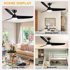 52 Inch Ceiling Fan with Light and Remote Control,6 speed adjustable remote control,3 color Dimmable LED,1/3/6 Hours Timer,Reversible DC motor, Black Modern Design For Living Room Bedroom Kids Room Dining Room Warehouse Patio 52 inch Ceiling Fan with Light and Remote Control,this Minimalist Modern Ceiling Fan is pretty matched with modern home decoration.Comes with both Matte Black Blades;Its medium size matches with most of home scenarios.This low profile ceiling fan makes your home more comfortable,moves more fresh air to your home,brings you bright environment Ceiling fan with LED Light and DC motor, 24W LED can illuminates all home spaces,3 colors dimmable LED, with Cold to Warm(3000/4000/6000K) / Dim to Bright(20%~100%) adjusting; 6 speeds Quiet DC motor with Reversible Function is suitable for all seasons, Double colored/dual sided blades with high quality CMF. It runs ultra quiet(lower than 30dB),makes all family members can enjoy peace,coolness and fresh air absolutely New Generation Remote Control, attached bracket kit, could be fixed on wall as wall-switch.Comes with richer functionality :Light ON/OFF, supports 3-color temperature + adjustable brightness. Supports adjustable Speed levels: 1-2 Soft,3-4 Natural,5-6 Cooling, and One-click FAN OFF; Control Forward/Reversible dual-mode air circulation for all seasons;1/3/6 Hours Timer for your choice;One-click sleep mode for more convenience Modularity design, makes installation very easy.Packaging with Easy-assemble 3 Blades,plug-in LED light Module and Remote Control Module,DC Motor Kit and User Guide inside.Downrod Ceiling Fan with Low profile design,it could be installed in dining room,living room,bedroom,warehouse,kitchen and all indoor spaces,even outdoor as patio ceiling fans are designed for your home life and beneficial for household expense.Energy-efficient DC Motor makes air circulation(Max to 6000 CFM) in all seasons but less power consumption.LED lighting your home also with low power consumption.ETL certified and listed relying powerful factory provides a wide range of products, also provides professional After Sales Service and support includes return service and spare part supplying for repair