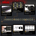 Product View Details Specifications: LED power: 2000W Light angle: 30 ° (Spot / Pencil Combo Beam) Voltage: DC 9-32V Compatibility: Both 12V- 24V vehicles Waterproof rate: IP 68 LED QUANTITY: 200 pieces * Thin double row 10W LEDs Theoretical lumen output: 75000lm Color temperature: 6000K white Material: Die-cast aluminum housing, aluminum alloy double groove brackets Mounting bracket: stainless steel Working temperature: -40 ~ 85 ° C Accessories: screws + mounting bracket Size (W + D + H): 33 * 3 * 1.6 inches (approx) Weight: 0.9kg Certification: CE, RoHS, FCC Lifetime: Over 50,000 Package included: One 52-inch slim LED light bar + mounting bracket Properties: - Perfect low profile option for all-round and off-road racing, for police and fire engines, and for marine applications - Designed to project light at extreme distances while using very little power. - Durable housing made of extruded aluminum and virtually unbreakable polycarbonate lens are sealed against the elements for years of trouble-free operation Application 1. Off-Road Vehicle: , , Off-Road Vehicle, UTE, Four-wheel Drive, Off-Road Vehicle, UTB, Golf, Toyota, Tacoma, Chevy, Nissan Titan, Silverado, Pathfinder, Hummer H2 H3, Yamaha Viking, Dodge Ram, Ford F150 F250 F350. 2.Indoor use is garden and backyard lighting. Even warehouse lighting. 3. Special vehicle (fire engine, ambulance, communication vehicle, military command vehicle), forklifts, trains, boats, buses, tanks and other heavy equipment. Package: 1x52 inch bright LED light bar 2x mounting bracket 1x screw set Shipping Policy Payment Method Returns Policy Feedback About us Shipping Policy 1.Our orders are usually shipped within 2 business day (excludes weekends and public holidays) after cleared payment by express fast shipping 2.We offer US local shipping and international shipping. Main carrier we are cooperating now is FedEx, DHL ,UPS. 3.International buyers please note: a.Import duties, taxes and charges are not included in the item price or shipping charges. These charges are buyer’s responsibility. We will try our best to reduce the risk of the custom duties. b.Please check with your country's customs office to determine what these additional costs will be prior to buying. Payment Method 1.We accept payment through PayPal ONLY . 2.Please do not use the PayPal note field to indicate us to ship to other address. The note there will NOT be read. If you want to change the shipping address, please send ebay message to us 3.Payment must be received within 7 days after auctions ended. Please do not bid if you are not intending to buy. Unpaid dispute will be filed to eBay for the non payable bidders. 4.E-check payment will be held until the payment is cleared . Item can only be shipped out when all payment is cleared. Returns Policy 1.Products can be returned. But, If the products didn't have any problems, buyer should pay for the return shipping cost. It's really important that you love your purchase from us. 2.If you would like to Returns, Refunds & Exchanges, Please send ebay message to us, indicating the reasons and problems, to help us improve our service. Buyer has 30 days to return the item from the date the item was received. 3.Buyer is responsible for all return shipping charges. we will responsible to pay the resend package. We provide 2 years quality warranty (factory defect) since you purchased our item. 4.If for any reason you are not satisfied with your purchase, please send message to us to resolve any issues before leaving feedback. We will reply you ASAP. Thanks for your Understanding Feedback 1.We will be much appreciated if you leave me positive feedback with four 5-Detailed Selling Rating (DSR) to us basing on your satisfaction with our commodity and service. It's just take you few seconds .And we will do the same for you within 24 hours or more sooner. 2.Negative feedback will not help resolve any problems you have, please send ebay message to us before leaving negative feedback, our customer service will make best effort to help you with the issues. About us 1.Our online store opens 24 hours a day and 7 days a week. 2.Our Customer Support Working Time: (GMT+8)Monday to Friday,9:00-17:00 . Home Payment Shipping About us Contact us Copyright©2021 All rights reserved