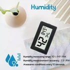 Features: Note:This product is a Celsius thermometer and cannot be converted to Fahrenheit. Mini Digital Humidity Thermometer allows you to easily know the temperature and humidity around you 2in1 meter with built-in probe; digital electronic thermometer and hygrometer for measuring temperature and humidity for indoor use Centigrade(°C) display, this thermometer displays temperature in Centigrade Temperature measuring range: -58°C-158°C ; Humidity measuring range: 10%-99%RH (Measures conditions every 10 seconds) Temperature measurement accuracy: ±1°C; Humidity measurement accuracy: ±5%RH Specification: Brand New Color:Black The indoor temperature and humidity display Default Centigrade temperature Type: Digital Thermometer Hygrometer Material: ABS Screen: LCD display Temperature measurement accuracy: ± 1.0 °C Temperature sampling cycle: 10 seconds Relative Humidity Test range: 10% -99% Humidity Resolution: 1% Humidity measurement accuracy: ± 5 (at room temperature 25 ℃)% Size: 48 × 28.6 × 15 (mm)/1.9*1.1*0.6 inch Display resolution: 0.1 °C Display: LCD (three and a half) Power: 0.15 mW under working conditions Battery: 2 1.5V of LR44 button batteries Temperature measurement accuracy: ± 1 °C Packet contents: 5-20pcs Digital Thermometer Hygrometer(Centigrade )