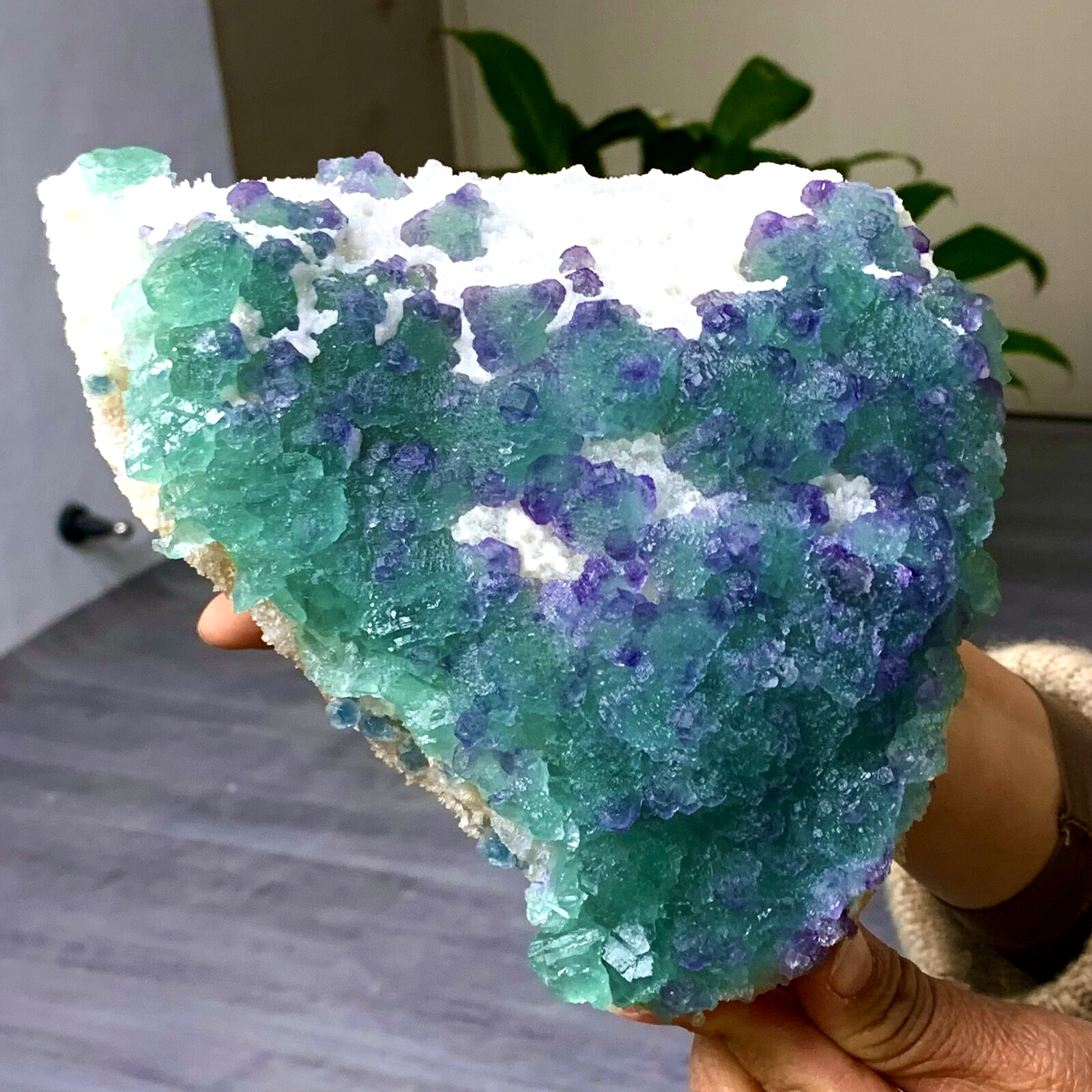 5.59LB Natural Rare Purple Cubic Fluorite Druzy Crystal Mineral Specimen