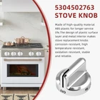 These are 5304502763 Gas Stove Knobs designed for Frigidaire Gas Range Stoves. The set includes 5 knobs made of plastic with engraved numbers for easy identification. They have a silvery chrome finish and are suitable for cooktops and conventional ovens/stoves. The knobs are designed for easy installation and are compatible with specific Frigidaire models.