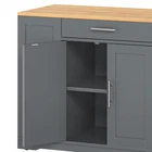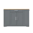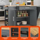 Product Description NOTE: Professional Installation would be Highly Recommended. Specifications: 1. Color: Gray 2. Material: Engineered Wood / MDF 3. Product Type: Rolling Kitchen Island 4. Shape: Rectangular 5. Room Type: Kitchen, Dining room 6. Special Features: 3 Open Shelves, 5 Lockable Rolling Wheels, Extra Garbage Bin, Adjustable Shelf, Metal Handle, Magnetic Closure Dimensions: 1. Product Dimensions: 53.1"L x 22"W x 36.4"H 2. Drawer Dimensions: 26.5"L x 12.6"W x 3.3"H 3. Shelf Dimensions: 20.8"L x 12.6"W x 7.8"H 4. Item Weight: 160.9 lb Package Included: 1 x Kitchen Island Trolley 1 x Instructions Manual The product will be dispatched separately into 2 packages. (PACKAGE DOES NOT INCLUDE TRASH CAN) Product Details Generous Storage Solutions for a Tidy Kitchen Effortlessly organize your kitchen essentials with this versatile storage unit. Featuring two spacious drawers for utensils and dinnerware, three open shelves for easy access to spices, and a customizable adjustable shelf behind closed doors, it offers tailored storage options to suit your needs. Perfect for streamlining your space with style and practicality! Sleek Tilt-Out Trash Cabinet Elevate your kitchen with this chic cabinet designed for a 13-gallon trash can (not included). It efficiently controls odors, keeping your space clean and fresh while enhancing your kitchen's aesthetic. Smooth & Secure Mobility Easily transition your workspace with 360° swivel casters, allowing effortless movement between areas. When it’s time to get to work, simply lock the wheels for a stable and secure prep station, ensuring both convenience and reliability in any setting. Versatile & Built to Last Transform your space with this multi-purpose cabinet, designed to serve as a trash cabinet, coffee bar, microwave stand, or prep station. Crafted from CARB Phase II certified MDF, it guarantees durability and reliability. The spacious countertop (53.2"W x 22.1"D x 36.0"H) provides ample room for organizing, prepping, or serving, making it an ideal addition to kitchens, dining areas, or restaurants. Shipping 1. The shipping rates listed are only for residential or commercial destinations in the continental 48 states of USA. All international sales will go through eBay International Shipping Program. 2. We don't ship to Hawaii, Alaska, Puerto Rico, APO/FPO/PO Boxes. 3. Please verify the correct shipping address in your PayPal account before making the payment. We only dispatch the item to the address that is sent to us at the time of checkout. 4. The major delivery we use are USPS, UPS, FedEx & LTL. 5. Normally the item will be dipatched within 1 business day if payment is cleared before 12pm PST. 6. We don't provide local pick-up service. Payment 1. We accept PayPal and credit card. 2. Ship to the confirmed Paypal shipping address that is provided with the payment. Return 1. 30 days Money Back Guarantee. 2. Please contact our customer service to receive a RMA form first if want to return the item. 3. All returned items MUST in new condition with the original package. On Sep 26, 2024 at 01:43:59 PDT, seller added the following information: