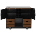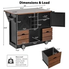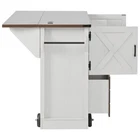 54" Farmhouse Kitchen Island w/ Drop Leaf,Power Outlet,Kitchen Storage Cart Features [Timeless Farmhouse Elegance] While preserving the timeless charm of traditional farmhouse design, this kitchen island seamlessly integrates contemporary elements. Featuring a classic double-crossed barn door design, it pairs a light brown countertop with hidden-handle drawers to blend rustic appeal with refined elegance, adding a distinctive touch to your kitchen and dining space. [Convenient Drop Leaf Design] The counter of this kitchen island is equipped with a foldable drop leaf. When you run out of space, you can open it to get more operating space, so you can put more things on the counter and increase storage space. Of course, you can fold it when you don't need to use it, and leaning against a wall or corner is a good storage option. [Ample Storage Space] This storage kitchen island offers versatile storage solutions to help keep your kitchen tidy. The 47.2-inch-wide countertop provides easy access to frequently used items while offering ample workspace. Featuring two spacious drawers and two cabinets with adjustable shelves, plus a removable hollow wine rack, it effortlessly organizes items like paper towels, coasters, or wine accessories. You can freely adjust the internal storage layout to suit your specific needs. [Convenient Charging Station] Say goodbye to messy charging cables and enjoy the convenience of the built-in charging station. This elegantly designed kitchen cart includes a sophisticated built-in power outlet, featuring 2 AC outlets, 1 USB port and 1 Type-C port to effortlessly meet all of your kitchen appliance power requirements. You can conveniently charge your coffee maker, juicer, and toaster on the countertop of this kitchen storage island. [Mobile Kitchen Island] Our mobile kitchen island features four oversized 5-inch diameter casters. Wherever you need to go indoors, this cart effortlessly gets you there. Even in challenging outdoor environments, you can freely maneuver this cart to your destination. [Sturdy & Safe] Crafted with high-quality, P2 grade particleboard and MDF, our product features a sturdy structure. The kitchen island table tops have a weight capacity of up to 400 lbs. We prioritize your well-being and health. The exquisite sealing process makes the Kitchen Island with Storage Cabinet a waterproof surface with a smooth texture for durability. With a durable laminate finish and structurally sound design, this table is built to withstand long-term use. [Simple Assembly Required and Dimensions] This kitchen island with storage is accompanied by comprehensive step-by-step assembly instructions and labeled parts and hardware to ensure a seamless assembly process. Should you encounter any challenges during the assembly of this kitchen cart, please do not hesitate to reach out to us for assistance. Notice: 1.Real Product’s Color may be a little different from the image due to the lighting or monitor’s display. 2.Manual measurement has been used, there may be some reasonable error. Descriptions Distressed White Cabinet Its warm distressed white cabinets, brown wood grain tabletops and lend a touch of farmhouse charm. Removable Hollow Wine Rack The center section of the dining cart features a removable wine rack that can hold up to eight bottles or glasses. With this, you can freely enjoy the comfort of an indoor bar. Retro Metal Decor The black corner accents on the tabletop and the metal butterfly hinges on the door panels infuse both the product and your interior space with a rich farmhouse ambiance. 4 Large Rotation Wheels Our mobile kitchen island features four oversized 5-inch diameter casters. Wherever you need to go indoors, this cart effortlessly gets you there. Even in challenging outdoor environments, you can freely maneuver this cart to your destination. Two Large Vintage-patterned Drawers Two large drawers with hidden handle design. Not only do they offer ample storage space, but they also add a unique design touch to this product. You're sure to love them. Large Drop Leaf A folding rolling kitchen island countertop can offer additional workspace and storage when needed, and can be effortlessly folded up to create more space. Power Supply This elegantly designed kitchen island cart features a sophisticated integrated power outlet, equipped with 2 AC outlets, 1 USB port, and 1 Type-C port to effortlessly accommodate all your kitchen appliance power needs. Spice & Towel Rack This kitchen cart comes with a towel rack and a spice rack to keep your table tidy. You don't have to worry about the lack of space for small bottles, jars or wet towels. Highlights&Summary Highlights [Large Size &Widen 47.2" W Kitchen Table] [2 Doors + 2 Deep Drawers][Drop Leaf] [Farmhouse Embossed Texture Barn Door] [2 Internal Storage Rack][Ample Storage Space] [4 Large Rotation Wheels][Power Outlet] [Spice Rack &Towel Rack][Adjustable Shelves] [Manufactured P2 Board][Metal Corner Decoration] Summary Introducing the 54-inch wide farmhouse-style kitchen island cart, seamlessly blending rustic charm with smart functionality. This versatile kitchen cart features a two-tone design: a warm walnut-finished countertop paired with a vintage white base, creating a timeless farmhouse style that elevates any kitchen or dining space. Engineered for maximum utility, it offers generous storage: two large drawers, two side cabinets, and a central open shelf with built-in wine rack that neatly organizes cookware, tableware, and treasured bottles. The spacious countertop provides ample prep or plating surface. Crafted from premium P2-grade engineered wood for durability, four oversized smooth-rolling casters ensure effortless mobility throughout your home. Whether serving as a kitchen island, bar cart, or storage cabinet, this piece seamlessly blends rustic charm with modern functionality, becoming an indispensable focal point in your living space. Specifications Product Dimension(Overall) 54 x