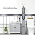 Store Hot Sale • Ample Storage: It features plenty of storage space with two open shelves, a large cabinet, and two drawers; this small bathroom cabinet allows you to organize linen, towels, and other essentials. • Space Saving: The linen tower's freestanding vertical design takes up less floor space than similar models making the small cabinet perfect for little rooms and areas. • Solid Structure: Solid wooden rods support a double platform shelf system of bathroom storage organizer, allowing for optimized horizontal placement of knick-knacks and toiletries. • Extra Security: The narrow bathroom cabinet has the necessary hardware to secure the unit to a wall for added safety and stability. • Linen Cabinet Information: Overall Dimensions: 6" L x 13" W x 53.75" H. Weight Capacity: 11 lbs. Assembly required. ● Color: Grey ● Material: MDF ● Overall Dimensions: 6" W x 13" D x 53.75" H ● Open Shelf Dimensions: 6" W x 12.5" D x 13.5" H ● Inside Cabinet: 5" L x 11.75" W x 7" H ● Inside Drawer: 4" L x 10.75" W x 3.25" H ● Weight Capacity: 11 lbs. ● Item Label: 834-114GY ● Tall and slim vertical profile in a modern style ● Features two open shelves and three bottom drawers ● Provides ample storage space with contemporary style ● Great for storing towels, toiletries, and other bathroom necessities ● Can be secured to a wall for added stability ● Assembly required