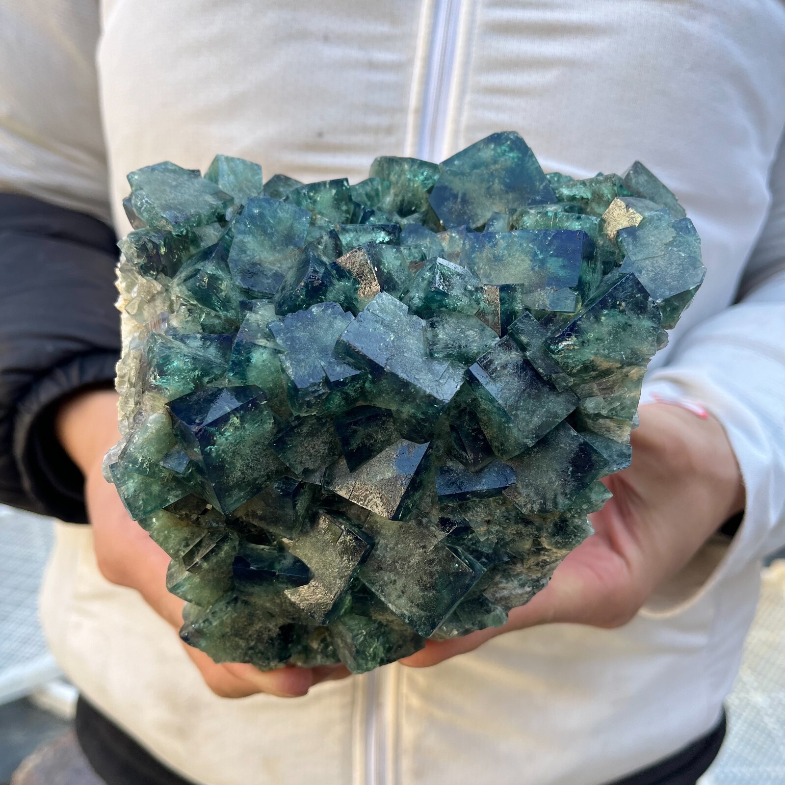 2.2lb Natural Green Fluorite Crystal Quartz Cluster Specimen for Healing and Energy