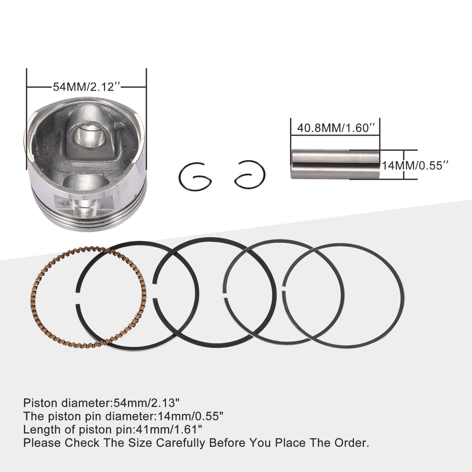 The piston diameter:54mm;The piston pin diameter:14mm,length of piston pin:40.8mm Replacement for SSR BMS NST JCL Taotao Baja Kazuma Sunl Coolster Jetmoto and other unlisted brand There are 2 type of Chinese 125cc engine,this item fit for Horizontal Engine 125cc,not for vertical engine Warranty:We are always available to help our customers.Please message us for replacement or refund if you are not satisfied with the order
