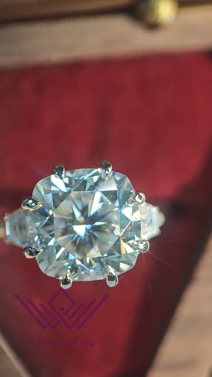 5.5 CTW Cushion Cut Double Claw Basket Three-stone Comfort Fit 2.5mm Shank D Color 10K 14K 18K White Rose Gold PT950 Silver Moissanite Ring ๐ Available Metals: A) 5X Platinum Vermeil, B) Solid 10K Gold, C) Solid 14K Gold, D) Solid 18K Gold, E) Solid 950 Platinum. โ HIGHEST QUALITY Certified White Gold, Rose Gold, Yellow Gold & 950 Platinum. (Not Trash). ๐ Ring Size: 2,3,4,5,6,7,8,9,10,11,12,13,14,15,16 and anything between these ring sizes available. It could be 1/4, 1/2, or 3/4. We Fit It to your Exact Finger Size no matter what size you want. ๐ Main Stone: HARDEST Quality VVS GRA Certified Hand Cut Moissanite (Pass Diamond Testers) โจ Side Stones: Premium Quality VVS Moissanite. (Pass Diamond Testers) ๐ Certified: GRA - GRC ๐ Polish: Excellent Polish. Shiny & Clean for Maximizing Sparkles. โฆ Cut: Hand cut Excellent cut & Symmetry with Crisp & Sharp Edges/Corners. ____________________ ๐ 100% Handmade with GORGEOUS & Accurate Details. Itโs an Art, not only a Valuable Material. ๐ 60 Days Money Back Guarantee for Any Reason even if you don't Fall In Love with it. ๐คฏ FREE LIFETIME Main Stone Warranty & Side Stone Replacement. (No Color Change). ๐ FREE LIFETIME Jewelry Cleaning & Re-plating. ๐ Hypoallergenic. Skin Friendly. Doesnโt cause any type of Allergies. ๐ Customizable with/to Your Favorite Stone/Jewelry Type & Shape. ๐ FREE STUNNING Random GIFTS On Every Order (we sell them for +$200 up to over +$700). ๐ฅฐ Amazing Wooden Gift Boxes for Your Main Jewel & its Gifts. ๐ฅณ Gift Wrapping Available (we wrap with no tags or receipts, ready to present). ๐คฉ VIP Customer Service to Make Your Dreams Come True in the Most Fantastic Way. ๐ FREE SUPER FAST FedEx Express Shipping. ____________________ ๐โ + Our 5X Platinum Vermeil: Platinum is 9.4 times RARER & slightly more DURABLE than gold. Rings with platinum end up more EXPENSIVE than gold because the DENSITY of platinum is a lot HIGHER and the QUALITY is EXTREMELY PURER. Rings THICKLY plated FIVE TIMES with platinum offer MUCH STRONGER PROTECTION against wear and scratches than gold plated jewelry. Therefore they LAST the LONGEST while giving you a SHINY LOOK ALL THE TIME. ๐โ + Our Rare Stone Quality: Here you have the NATURAL looking color of the diamonds in a RARE size with extraordinary VVS1 clarityโฆ Weโre offering the GREATEST QUALITY and VALUE at the BEST PRICE with this design by using very SPECIAL types of GRA Certified Moissanite stones. Natural diamonds in this color, clarity and size are super rare and very hard to find. Some of them easily cost over $10,000 per carat. (please message me for natural diamonds like this color, size and shape so I can give you the accurate price based on your preferences) ____________________ ๐ข๐๐ FREE FAST EXPRESS SHIPPING Processing + Shipping = Receiving Time PROCESSING: Only 1 available. This ring will be shipped within 48 hours. (Other sizes require customization for 2-3 weeks. ) SHIPPING: 2-6 days via FedEx Express for FREE โ Youโll get updated with the tracking code, once your package is shipped. โ We ship with insured FedEx only which is very secure. โ An adult signature is required at the time of delivery. _____________________ โ๐๐ CUSTOMIZATION/PERSONALIZATION: Custom orders with me are SUPER EASY & COMFORTABLE, no matter if youโve never done it before or youโve done lots of them. ๐ค I break down everything into small steps. And we go through the steps one by one together. On each step, youโll get to pick or guide me from the options I represent. ๐ Once we get to the end, your dream comes true. ๐คฉ๐ Because every single detail is just exactly what you want. ๐๐ ๐จ HOW TO DESIGN YOUR RING: A โ Send me some/one image similar to your idea. Or tell me whatโs your favorite shank, profile or stone? So I can show you some options to choose from. B โ Next, I will start designing it right away. Iโll send you some screen shots from what I designed. We can adjust any part of it together, until itโs exactly the way you want it to be. C โ After we get to the ideal conclusion, Iโll render several Ultra High Quality 3D images and a 4K video, so you see what the end result is gonna look like in reality. D โ The moment you approve everything, we start making it. Once itโs finished, weโll ship it the same day. + 3D IMAGE SAMPLES: Before you order yours, you can ask me for some samples of the 3D rendered images and videos. Youโre gonna absolutely love the quality, because they look like real rings. ๐คฉ๐ + Designing your dream ring with me is gonna be a fantastic experience. While you just sit and order, youโll watch how I take care of everything from your idea to the end product in the SIMPLEST & GREATEST way possible.โ โ------------ ๐ AVAILABLE GEMS: All stones are available - Colorless & Colorful Moissanite or Simulated Moissanite. Natural & Lab Grown Diamonds in Colorless or Colorful. Natural and Lab made Emerald, Ruby, Sapphire, Amethyst, etc. Just ask! ๐ฅ AVAILABLE METALS: All metals are available - 925 Sterling Silver, 5X Platinum Vermeil, 9K Solid Gold, 10K Solid Gold,14K Solid Gold, 18K Solid Gold (in Rose, White or Yellow), Platinum 950. ๐ AVAILABLE MATCHING PIECES: We can make matching pieces for this product. Engagement Rings, Bridal Sets, Wedding Bands, Earrings, Studs, Hoops, Bracelets, Bangles, Necklaces, Pendants, and anything youโd dream of. We can design all to set with this item. ๐จ๐จ๐ง๐ฆ AVAILABLE OTHER JEWELRY: We make jewelry as per occasion and celebration like birthdays, birth months, anniversaries, motherโs day, valentine's day, fatherโs day, memorials, thanksgiving, zodiac signs, graduation days, and many more per your request. ____________________ โโโโโ 5 STAR PRISTINE PROMISES: โฆ๏ธ 100% Satisfaction Guaranteed โฆ๏ธ Ethically Sourced โฆ๏ธ FREE Lifetime Ring Resiz