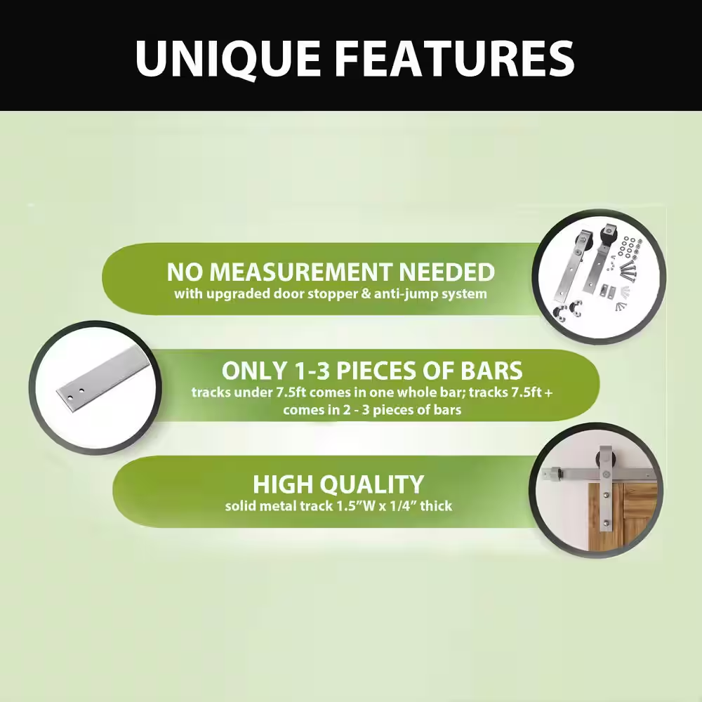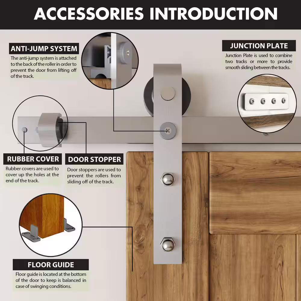 Fast Shipping On All Items 30 Days Money Guarantee Customer Support Excellent Service 100% Satisfaction Satisfaction Guaranteed 5.5 Ft./66 In. Brushed Nickel Non-Bypass Sliding Barn Door Track and Hardware Kit for Single Door Specification Builders Hardware Product Type Wall Mount Door Hardware Color/Finish Brushed Nickel Features No Features Hardware Color Family Nickel Hardware Finish Family Nickel Material Steel Number of Doors Single Door Returnable 90-Day Manufacturer Warranty 36 Months Product Depth (in) 4 in Product Height (in) 8 in Product Width (in) 66 in Total Assembled Track Length (in) 66 in. 66.0 inches x 4.0 inches x 8.0 inches. Item Description Premium carbon steel construction ensures durability Brushed nickel powder coating resist scratches and fading Nylon roller wheels minimize noise when it glides on the track Homacer provides you with affordable and easy-to-install interior sliding barn door hardware kits (doors not included) for your barn doors. Our hardware kits could be used for bathroom doors, bedroom doors, cabinets, closet doors, laundry room doors, and more. Our modern brushed nickel metal design allows for heavy duty usage, fitting door weights to a total of 220lbs. Our track and nylon wheels allows smooth and silent gliding at all times. As a company in the US, we have a professional customer service team here to assist you with any questions that you have with our products and ensure your satisfaction with our products. NO MEASUREMENT NEEDED: With our upgraded door stopper and anti-jump system, you can use them as the measuring tools for mounting the track and the rollers, so you don't need to measure everything by hand anymore; In our installation manual, you will see the step-by-step instructions with USA standard fractional inch measurements, self-explanatory pictures and concise word instructions ONLY 1-3 PIECES OF BARS: Tracks under 8ft long come in one whole bar so the spacing between 2 holes is exactly 16 inches while Track 8ft and above are connected by two or three bars using a junction plate; thus, the spacing between the middle two holes may not be 16 inches - in this case, please add a header board to secure the long track HIGH QUALITY: Our hardware is made of heavy-duty and sturdy premium carbon steel, allowing up to 220lbs total maximum weight limit; The wheels of the rollers are made of high-quality nylon which ensures minimal noise when gliding on track; Our brushed nickel finish went through the electroplating process to ensure best quality CUSTOMER SERVICE GUARANTEE: You are fully covered by our professional customer service team - as a company in the US, our professional customer service team is here to ensure your satisfaction with our products and quick response to any questions You are fully covered by our professional customer service team- as a company in the US, our professional customer service team is here to ensure your satisfaction with our products and quick response to any questions About us We offer the best prices around on high quality products. Our E-store includes media such as books, movies, music and games while offering electronics, toys, sporting apparel, clothing, tools, general home, garden items and more. Shipping We are always working hard to ensure your package arrives as soon as possible. Please understand that some factors like weather, high postal traffic, and the performance of shipping companies are outside of our control. We offer free shipping to the lower 48 states and ship within 2-3 business days of payment, usually sooner. We do not accept P.O. Boxes. Please provide a physical address. For shipping outside of the continental USA, we only use eBay's Global Shipping Program.The item is shipped to KY and then sent to the rest of the world. International customers are responsible for all duties and taxes. Continue to check out to calculate costs for shipping the item to your country. Messages regarding eBay's Global Shipping Program MUST be directed at eBay EXCLUSIVELY. Returns We offer a 30-Day Return Policy on items in which you are not completely satisfied with. You have the option of a full-refund or an exchange of the item. No returns are available on items shipped outside of the USA Satisfaction We try over very best to make sure every customer is completely satisfied. If there's a problem, message us! We're happy to help. Payment Options Shop With Confidence