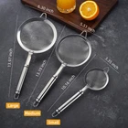 Color: Silver Material: Food-Grade 304 Stainless Steel Fine Mesh Makes Sifting & Draining Easy This strainer has a fine-grid mesh for draining the excess liquid from just about any food. The mesh is fine enough to strain rice, quinoa and beans, water drains quickly and the items would not fall through. This strainer set is also perfect for sifting flour, cocoa and powdered sugar as well as separating eggs when you are baking food. It can be used as cocktail double strainer, baking sifter, coffee dripper. Noodle Strainer It's easy to use this fine mesh strainer to take noodles or vermicelli out of hot water. Flour & Sugar powder Strainer Using this strainer, you can easily spread sugar powder on doughnuts or flour on cake , which makes sieving and refining a breeze. Skimmer Spoon The strainer can be used as skimmer, great for refining juice, condensed milk, butter or sauce. Well-Made Construction The mesh is completely affixed to the reinforced rim and not able to pull out of the rim, making them more substantial. There is no problem with food getting stuck between the steel mesh and the rims. Each strainer comes with a metal loop at the top for hanging from a wall- hook. Dishwasher Safe It's also easy to clean it by hand washing. Wash with a mild detergent, rinse off and dry. INCLUDED: 5.5″skimmer spoon [Diameter is 5.51 inch (14 cm) , 13.4 inch (34 cm) Long]. MATERIAL: Made from high-quality, food-grade 304 stainless steel. All sizes of strainer feature a sturdy polished and seal steel ring wire frame and have rust-proof firm fine mesh strainer screens with securely attached long handle which protects you from scalding. EASY TO USE: Dishwasher safe. Mirrored, burr-free wire mesh screen won't scratch your hand while you clean it. Place it in the water and shake it gently. Easy to store or just hang it up. Top quality kitchen utensils. Can handle boiling liquids whether draining boiled hot vegetables, washing rice, sieving flour or filtering juice. USED FOR: Ideal for straining tea pasta, flour, sugars, coffee, and other dry items.