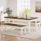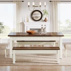Embrace the rustic charm of the wood kitchen table and benches, which bring warmth and character to your space. The spacious seating of this dining table set creates a cozy atmosphere for mealtime, allowing you to share family experiences. Whether it's a casual breakfast or a festive dinner, this set will provide a welcoming environment in your home.Features: The kitchen table comes with 2 benches and one of the benches can be easily stored under the table when not in use. This space-saving design allows it to comfortably accommodate 4-6 people without taking up too much room. Made of high-quality engineered wood, this rectangle kitchen table set is built to last. The thick table legs provide strong load-bearing capacity and stability, ensuring worry-free enjoyment of your meals. Free Shipping Over $49.99* Details 55-Inch Dining Table Set for 4-6, Wood Kitchen Table with 2 Benches Product Description: Embrace the rustic charm of the wood kitchen table and benches, which bring warmth and character to your space. The spacious seating of this dining table set creates a cozy atmosphere for mealtime, allowing you to share family experiences. Whether it's a casual breakfast or a festive dinner, this set will provide a welcoming environment in your home. Features: The kitchen table comes with 2 benches and one of the benches can be easily stored under the table when not in use. This space-saving design allows it to comfortably accommodate 4-6 people without taking up too much room. Made of high-quality engineered wood, this rectangle kitchen table set is built to last. The thick table legs provide strong load-bearing capacity and stability, ensuring worry-free enjoyment of your meals. The dining table set is carefully designed with rounded corners to reduce the risk of accidental bumps or injuries during daily use. The matching adjustable foot pads make it easy for the table to adapt to uneven floors, making it convenient for daily use. Our dining table set is not just for meals, it's a versatile centerpiece. Its size and simple design make it a seamless fit for various rooms such as kitchens, dining rooms, living rooms, apartments, and more. Our dining room table set has a simple assembly process, eliminating concerns about complex instructions. You can quickly assemble the set and enjoy a meal with your loved ones. Specification: ColorBrown&White MaterialParticleboard Product Size55.11" L x 27.56" W x 29.52" H (Bench45.86" L x 13.77" W x 17.71" H) Product Weight110.23 lbs Package Include1 * Dining Table Set, 1 * User Manual, 1 * Hardware Assemble RequireYe