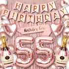 55 Birthday Decorations For Women KIT Includes: 1 X 40inch Number "55" Rose Gold Foil balloons set, 1 X Rose Gold Birthday Decorations Banner(6inch tall letters), 2 X 40inch Rose Gold Champagne Bottle foil balloons 1 X Rose Gold Foil Fringe Curtain(6.5fit x 3.2fit), 2 X Rose Gold Heart Foil Balloons(18inch), 10 X Rose Gold Confetti Balloons(12inch), 10 X Rose Gold Metallic Balloons(12inch), 10 X White Latex Balloons(12inch) Huge 40 inch Height Rose Gold Glitter Number "55" Foil Balloons (Helium Supported) that will stand out and make your Birthday Party rock. A must have Birthday Party Banner Sign. This Birthday Party Decorations set includes Rose Gold Birthday Banner with 6inch tall letters and a long ribbon that allows you to adjust the banner for any place. A must have 55th Birthday Party Banner. We strive to provide our customers with only the finest products and most attentive service. So don't delay. Order today! 55 Birthday Decorations For Women KIT Includes: 1 X 40inch Number "55" Rose Gold Foil balloons set, 1 X Rose Gold Birthday Decorations Banner(6inch tall letters), 2 X 40inch Rose Gold Champagne Bottle foil balloons 1 X Rose Gold Foil Fringe Curtain(6.5fit x 3.2fit), 2 X Rose Gold Heart Foil Balloons(18inch), 10 X Rose Gold Confetti Balloons(12inch), 10 X Rose Gold Metallic Balloons(12inch), 10 X White Latex Balloons(12inch) Huge 40 inch Height Rose Gold Glitter Number "55" Foil Balloons (Helium Supported) that will stand out and make your Birthday Party rock. A must have Birthday Party Banner Sign. This Birthday Party Decorations set includes Rose Gold Birthday Banner with 6inch tall letters and a long ribbon that allows you to adjust the banner for any place. A must have 55th Birthday Party Banner. We strive to provide our customers with only the finest products and most attentive service. So don't delay. Order today!