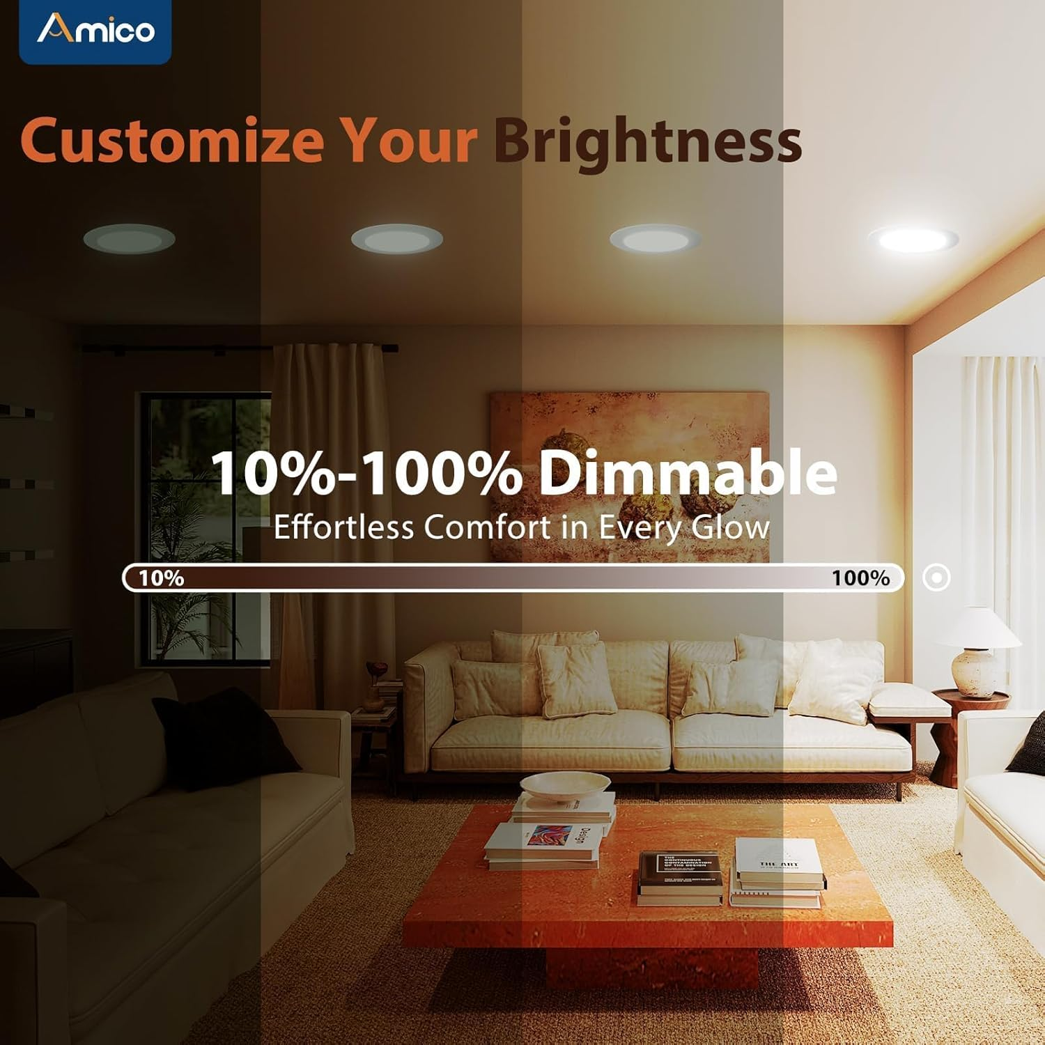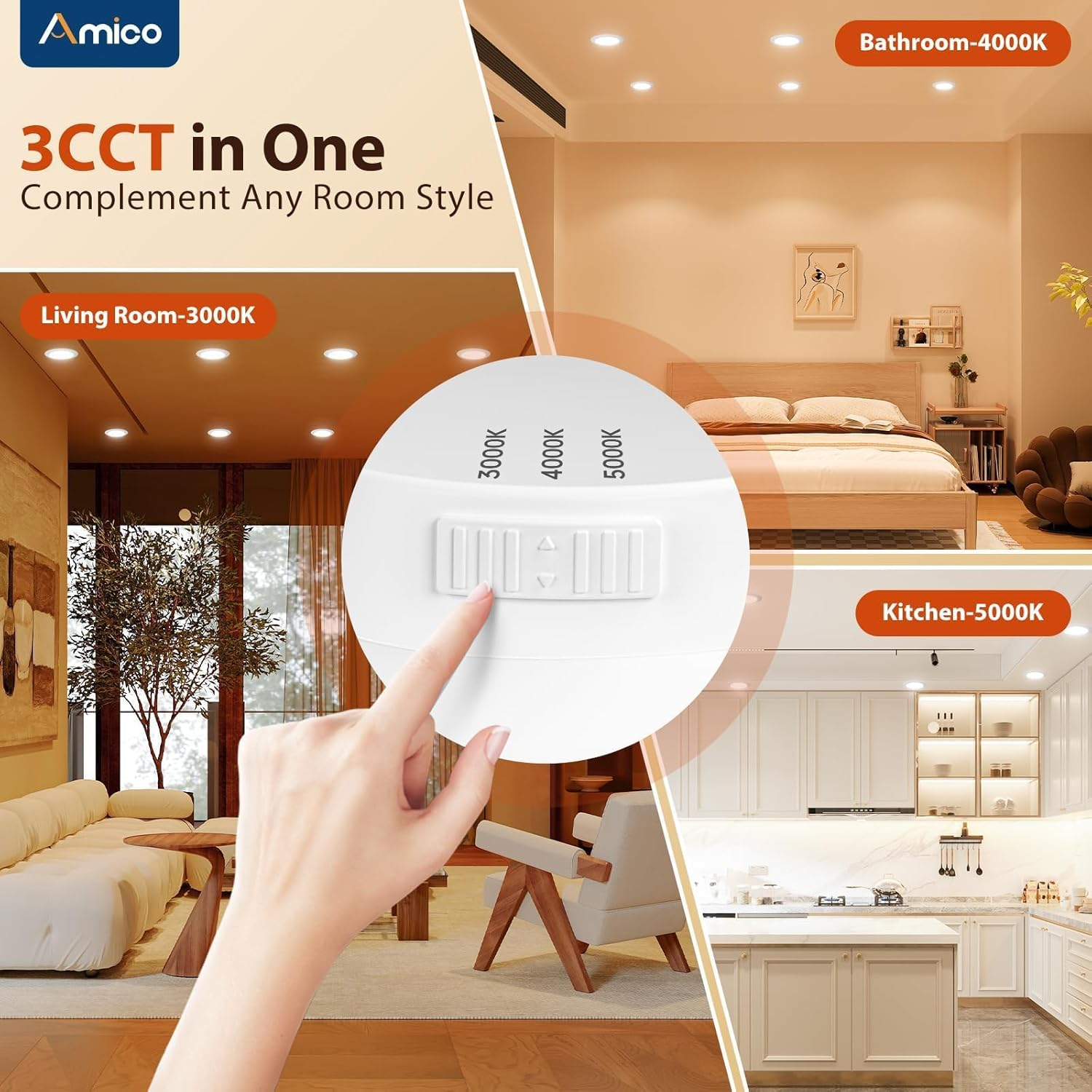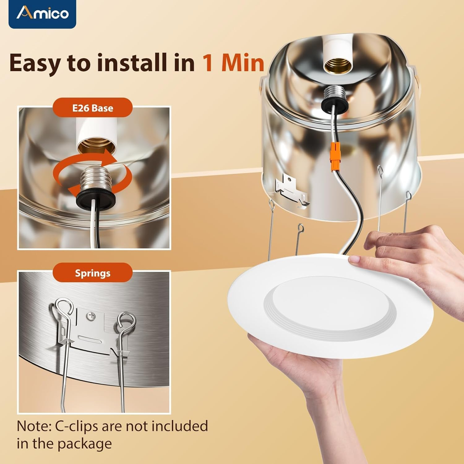 Store New Arrivals Add to Favorite View Feedback Contact 5/6 Inch 3CCT LED Recessed Lighting 12 Pack, Dimmable, IC & Damp Rated, 1 Description Item model number C-50 Light Source Type LED Style Retro Number of Items 12 Power Source Corded Electric Number of Light Sources 12 Control Method Touch Warranty Type 5 years Theme Indoor Batteries Included? No Lighting Method Downlight Controller Type Push Button Unit Count 12 Count Room Type Kitchen, Bedroom, Living Room, Dining Room Assembly Required Yes Switch Type Dimmer Average Life 35000 Hours Product Dimensions 7"L x 7"W x 1"H Material Plastic Installation Type Semi Flush Mount Specific Uses For Product Indoor Included Components Springs Indoor/Outdoor Usage Indoor Brightness 950 Lumen Light Color White Water Resistance Level Water Resistant Batteries Required? No Item Weight 1 pounds Light fixture form Recessed Special Features Energy Efficient, Dimmable Special Feature Energy Efficient, Dimmable Shade Color White Mounting Type Ceiling Mount Color 3 CCT in One (3000K, 4000K, 5000K) Wattage 12.5 watts Shape Round Voltage 120 Volts Plug Format A- US style Recommended Uses For Product Indoor Fixture Type Non Removable Size 6 Inch Selectable Colors: Our led can lights have 3 color temperatures selectable, 3000K, 4000K, and 5000K. Don't worry about what color temperature to buy, eliminates the hassle of returning or exchanging these due to inappropriate color temperature. Simple Installation: 6-inch led recessed lights to have a universal E26 base making installation as easy as a bulb, can be installed independently without an electrician, and will only take you 3 minutes to install one. Saves you time and money. Eye protection: The brightness of the can lights can be smoothly adjusted from 10% to 100%, so you can choose the most comfortable brightness for your eyes. Note: This light is compatible with most dimmers on the market, except for the smart dimmer. Reliable Safety: Don’t worry about the safety, these recessed lighting pass IC rating and ETL safety standards Certification. Also, our lights are surrounded by insulation and will not produce excessive heat, thus avoiding the possibility of fire on the roof. Wide Application: Amico retrofit downlights are damp-rated and can be installed in bedrooms, living rooms, kitchens, and hallways, in addition to bathrooms. A wide range of applications saves the trouble of picking multiple lights. Product Description ABOUT US We offer the best prices around on high quality products. Our E-store includes media such as books, movies, music and games while offering electronics, toys, sporting apparel, clothing, tools, general home, garden items and more. SHIPPING We are always working hard to ensure your package arrives as soon as possible. Please understand that some factors like weather, high postal traffic, and the performance of shipping companies are outside of our control. RETURNS We offer a 30-Day Return Policy on items which you are not completely satisfied with. You have the option for a full-refund or an exchange of the item. PAYMENT We accept PayPal. CONTACT US This page content is yet to come Please ad us to your favorite seller and visit again later Thank You CUSTOMER SATISFACTION We try our very best to make sure every customer is completely satisfied. If there's a problem, message us! We're happy to help.