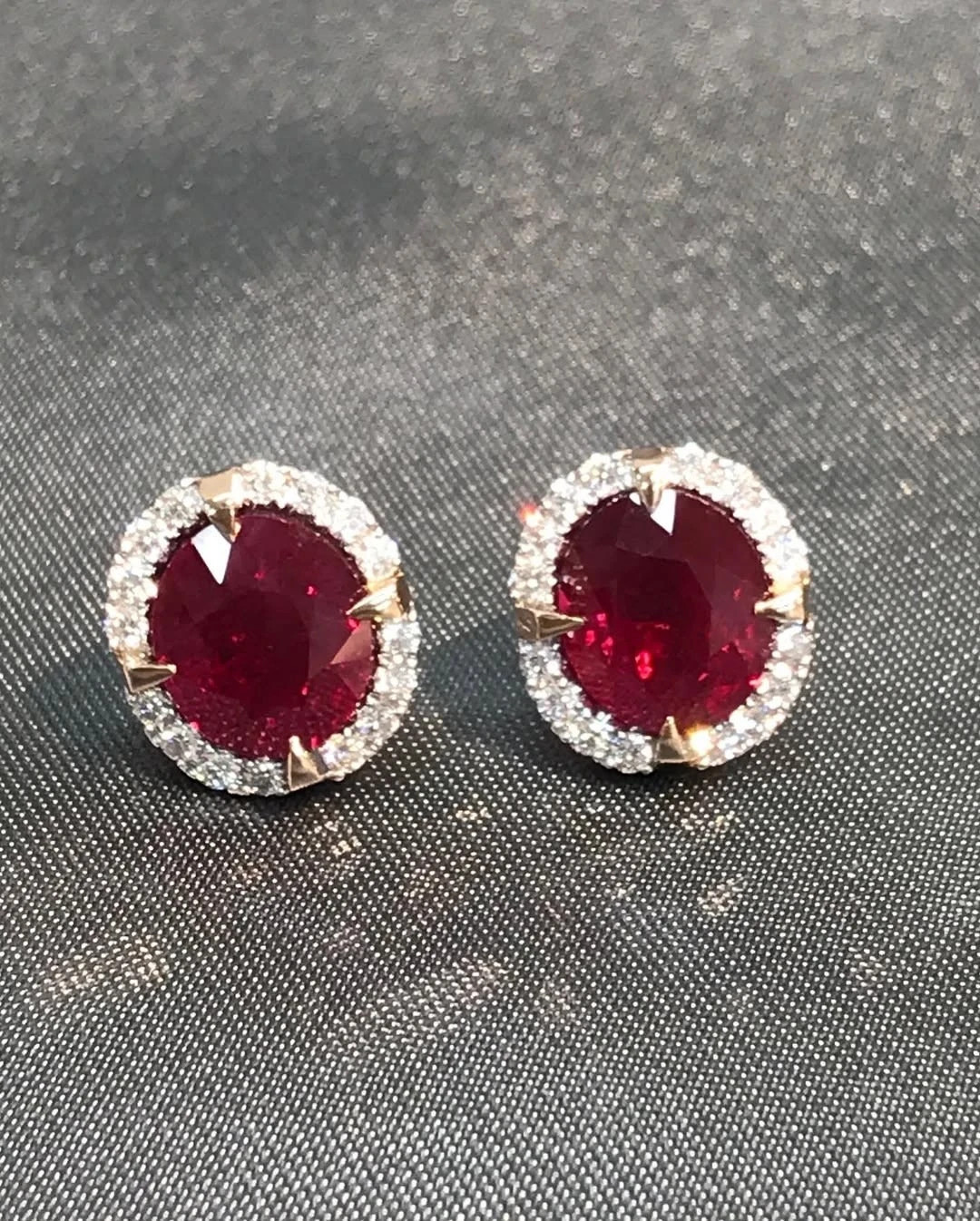 IGI Certified 8.27 ct tw. lab-grown Garnet-Diamond Earrings 14k white gold