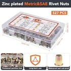 Specifications: Material: Zinc Plated Quantity:560 pcs Color: Yellow Size: Metric&SAE Features: 1.The rivet nut assortment kit is made of durable galvanized steel, which will not rust and has a certain hardness. The flat head and internal thread are tight, which can be firmly fixed on the surface of the object and connected by screws. 2.The rivet nut combination contains 13 most commonly used sizes to meet daily home and mechanical maintenance scenarios. 3.The rivnuts kit comes with a compartment storage box with label stickers, and the size quantity corresponds to each other, which is convenient for finding and storing. Easy to Use: Our Metric&SAE rivet nuts can be used for metal shell insert fastening. You only need to put the rivet nut into the hole of the object shell, adjust and fix it, and then you can use screws to tighten the connection. Zinc Plated Carbon Steel: The rivet nut is made of durable carbon steel, with a galvanized surface, which is rust-proof and waterproof. It has high strength and a tight internal pitch, which can help the product to be fastened. 13 Commonly Sizes: Rivet nut assortment kit contains 13 different sizes, 560 pieces in total, SAE: #6-32(45 pcs), #8-32(65 pcs), #10-24(65 pcs), 1/4"-20(65 pcs), 5/16"-18(25 pcs), 3/8"-16(20 pcs), Metric: M3(70 pcs), M4(70 pcs), M5(50 pcs), M6(50 pcs), M8(20 pcs), M10(10pcs), M12(5 pcs). Label box: The rivnuts set comes with a sturdy plastic box with clear markings, so you can intuitively see the quantity and corresponding size, ensuring that the product will not be mixed up during transportation. It can also be clearly stored after use. It is also suitable for giving to friends and family who love DIY. Widely Used: Rivet nuts are suitable for connecting and fixing various embedded shell workpieces, and are suitable for home appliances, air conditioners, automobiles, fitness equipment, etc.