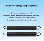 56-1 Ladder Springs Replacement fit Attic Stairs Pull Down Black Product Details Manufacturer: Lankstet Part Number: attic ladder parts 56-1 Item Weight: 9.6 ounces Product Dimensions: 1 x 1 x 1 inches Item model number: attic ladder parts 56-1 Color: Black Material: stainless steel Included Components: attic ladder replacement parts Batteries Included?: No Batteries Required?: No 【ATTIC SPRING REPLACEMENT】Ladder springs replacement part number: 56-1. attic spring replacement fit werner ladder ,attic stairs pull down ladder etc.Designed to help the attic stairs operate flawlessly. 【FOR WERNER LADDER ACCESSORIES】Our attic ladder replacement springs compatible with Werner Model Attic Ladders: W2200 WH2200,W2208 WH2208,W2210 (Mk 1 to Mk 3) WH2210 (Mk 1 to Mk 3), W2500 WH2500, W2508 WH2508, W2510 (Mk 1 to Mk 3) WH2510 (Mk 1 to Mk 3) 【HIGH QUALITY】ladder springs made of high-quality spring steel wire,Special machining reinforcement durable, and of very good quality.The surface of the spring is specially treated, not easy to oxidize, not discolored. 【PAY ATTENTION WHEN INSTALLING】Inspect the access ladder before installing this kit. Repair or replace any damaged or missing parts before using theladder. Use only Werner Co. repair or replacement parts. lf unable to repair, discard the ladder. 【SINCERE SERVICE】This product is manufactured by Lankstet and we are committed to creating quality products. This attic spring is superior in quality to the original and is rigorously tested.If you have any questions, please feel free to let us know by email and we will get back to you within 24 hours. Includes: Springs*2 Fits These Werner Model Attic Ladders: Models Mk 1 thru Mk 3 W2200 WH2200 W2208 WH2208 W2210 WH2210 W2508 WH2508 W2510 WH2510 Overall Length Of Spring: 9-1/8" Designed To Replace The Rusty/Damaged/Dangerous/OldAttic Ladder Spring INSTALLATION STEPS 1.One person needs to enter the overhead space. Onceone person is in the overhead space the person belowshould close the access ladder to remove sometension in the springs. With the person below holdingthe accessladder closed,the person in the overheadspace should carefully remove one spring only andreplace it with the new spring. 2.Once one spring has been replaced,the remainingspring can be removed and replaced following theprocedure in step 1. 3.The person below can now open the accessladderand the person in the overhead space can exit.
