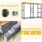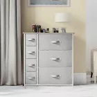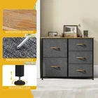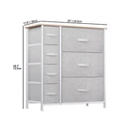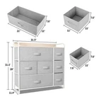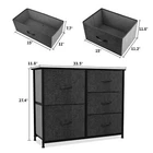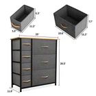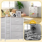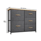 5/7 Drawers Fabric Dresser Storage Closet Organizer Chest of Drawers for Bedroom Features: Color: Dark Gray, Light Gray, Cool Gray Primary Material: Fabric Number of Pieces: 1 Item Shape: Rectangular Care Instructions: Wipe with Dry Cloth 5 Drawers Dimensions: 33.5''L x 11.8''W x 27.4''H Large Drawer Dimensions: 15''L x 11.2''W x 11.6''H Small Drawer Dimensions: 15''L x 11.2''W x 7.7''H Item Weight: 20 lbs 7 Drawers 06/07 Dimensions: 25''L x 11.8''W x 28.5''H Large Drawer Dimensions: 15.6''L x 11.2''W x 8.5''H Small Drawer Dimensions: 5.9''L x 11.2''W x 6.3''H Item Weight: 19 lbs 7 Drawers 08/09 Dimensions: 31.5''L x 11.4''W x 31.8''H Large Drawer Dimensions: 21''L x 11''W x 7.6''H Medium Drawer Dimensions: 11''L x 11''W x 7.6''H Small Drawer Dimensions: 7.9''L x 11''W x 7.6''H Item Weight: 25 lbs Description: 【AMPLE STORAGE】Featuring 5/7 drawers of different sizes, this storage unit provides ample storage options for your bedroom or living room. It allows you to create a neat and organized space. 【QUALITY MATERIALS】Crafted from a reliable metal frame and a durable MDF wooden top, this storage unit guarantees reliability and durability. The drawers are removable and foldable, and can be easily opened and closed with the help of convenient pull handles. 4 adjustable plastic feet protect your floor from scratches. 【DURABLE FABRIC】The outer and inner sides of this storage unit are made of high-quality breathable non-woven synthetic fabric. This fabric is both durable and easy to clean. Simply wipe it clean with a damp cloth and allow it to air dry. 【EASY ASSEMBLY】Assembly is a breeze with the included detailed instructions. All necessary hardware is provided, making the installation process hassle-free. Simply follow the instructions and fasten the screws to assemble the unit.