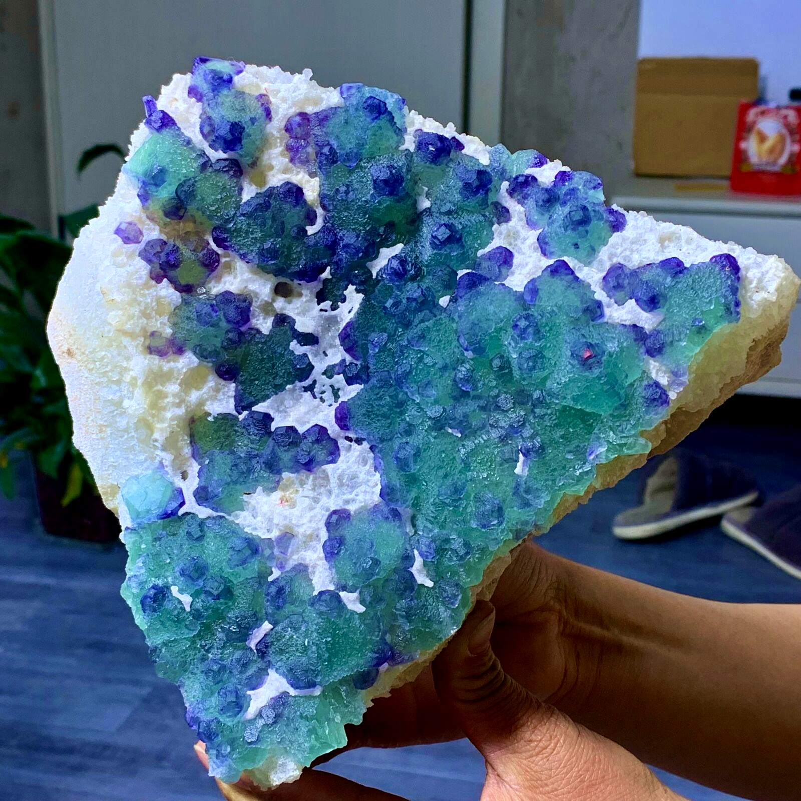 1.3LB Natural Blueberry Fluorite Quartz Cluster Crystal Specimen for Healing