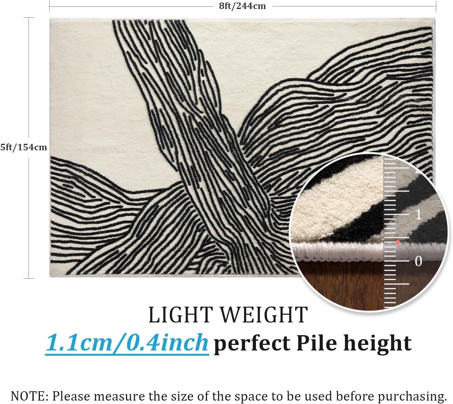 Store New Arrivals Add to Favorite View Feedback Contact Fast deliveries to the customer's home Quality customer service John Make the customers happy! 5×7Ft Area Rugs, Abstract Washable Rug, Modern Black and White Rug for Bedroom Living Room Dining Room Office Playroom Nursery, Nonslip Throw Non-Shedding Thin Contemporary Striped Rugs Description [Ultra Soft Modern Rug]: The modern abstract rug, premium and super soft fibers,with skid resistant backing, low pile and outstanding durability will hold up in high-traffic areas of your home. They're a great way to show your personal style and suit the fussiest of feet. [Non-Slip Backing]: Our rug designed with a non-slip backing, you can trust that these rugs will stay securely in place, so you can rest easy knowing that your rug will stay in place, even in high-traffic areas. A perfect blend of function and contemporary design for active homes. [Machine Washable]: This is a machine washable area rug, making it much more convenient to clean, Dust and dirt on the area rug surface can be removed easily. You can clean spills immediately by blotting with a clean sponge or cloth. Or gently machine wash then air dry at room temperature. [Versatile for Any Space]: Unique modern style design carpet, with resilience against everyday wear and tear, this area rug is perfect for living room, dining room, bedroom, entryway, nursery, dorm room, study, foyer, mudroom, bathroom, home office, kitchen, and more. [Product Note]: Rugs may contain temporary creases upon arrival, Please don't worry. Gently smooth them out with your hands, flatten them on the floor and walk around, allow time for creases to flatten and settle. Keep the bottom of the rug always be dry when you use. Product description 1 About Material 2 About Edge 3 About Backing 4 About Thickness The video showcases the product in use. The video guides you through product setup. The video compares multiple products. The video shows the product being unpacked. washable area rug Merchant Video Style Modern Weave Type Machine Made Pattern Abstract Is Stain Resistant No Theme Modern Number of Pieces 1 Room Type Bedroom Material Surface Material: Polyster Backing Material:TPE Rug Form Type Area Rug Indoor/Outdoor Usage Indoor Animal theme Zebra Item Weight 6.05 pounds Pile Height Low Pile Construction Type Machine Made Special Feature Non Slip, Soft, Washable Color Modern Lines Beige Shape Rectangular Back Material Type Rubber Recommended Uses For Product Bedroom, living room, dining room, office, playroom, nursery, study, foyer, mudroom, bathroom, home office, kitchen Product Dimensions 96"L x 60"W Product Care Instructions Machine Wash Size 5' x 7' (Rectangular) ABOUT US We offer the best prices around on high quality products. Our E-store includes media such as books, movies, music and games while offering electronics, toys, sporting apparel, clothing, tools, general home, garden items and more. SHIPPING We are always working hard to ensure your package arrives as soon as possible. Please understand that some factors like weather, high postal traffic, and the performance of shipping companies are outside of our control. We offer free shipping to the lower 48 states and ship within 2 business days of payment, usually sooner. We do not accept P.O. Boxes. Please provide a physical address. For shipping outside of the continental USA, we only use eBay's Global Shipping Program. The item is shipped to KY and then sent to the rest of the world. International customers are responsible for all duties and taxes. Continue to 'check out' to calculate costs for shipping the item to your country. Messages regarding eBay's Global Shipping Program MUST be directed at eBay EXCLUSIVELY. RETURNS We offer a 30-Day Return Policy on items in which you are not completely satisfied with. You have the option of a full-refund or an exchange of the item. No returns are available on items shipped outside of the USA PAYMENT We accept PayPal. CONTACT US This page content is yet to come Please ad us to your favorite seller and visit again later Thank You CUSTOMER SATISFACTION We try our very best to make sure every customer is completely satisfied. If there's a problem, message us! We're happy to help. WE ACCEPT