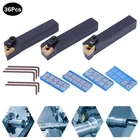 Specifications Model: MTJNR1616H16+MWLNR1616H08+MCLNR1616H12; CNMG431+WNMG431+TNMG 331 Material: Steel, Cemented Carbide Color: Black, Gold Special Feature: Durable, Indexable Cutting Direction: Right Hand Applicable Machine Tool: Lathe Number of Turning Tool Holders: 3 Number of Inserts: 33 Package Size: 16*12*5cm/6.3*4.7*1.96inch Net Weight: 0.88kg/1.94lbs Gross Weight: 1kg/2.2lbs 36Pcs Indexable Carbide Lathe Turning Tool Insert Holder Carbide Turning Insert Description This indexable turning tool set includes 3pcs turning tool holders and 33pcs inserts in different models, providing you with a professional tool for cutting. They are made of high-quality steel and cemented carbide, making them high-strength and long-lasting. The precise angles and smooth lines assist you to achieve accurate&smooth cutting and high work efficiency. Key Features Build to Last: The turning tool holders are made of high-quality 40Cr steel which makes them durable and adaptable. The cemented carbide inserts have high hardness, low friction coefficient, and nice wear resistance and chemical stability. Smooth&Precise Cutting: The precise angles and smooth lines allow for accurate&smooth cutting, reduce wear during work, and improve your work efficiency. Professional Turning Tool: It includes 33 inserts and 3 turning tools of different models, along with a positive cutting angle and built-in chipper design, which is very suitable for general-purpose cutting action. Considerate Design: The turning tool with a short length facilitates its use in areas with limited access. Easy to Install : You just need to install the inserts on the holder with the equipped special allen key. Easy to Carry&Store: The 33pcs indexable carbide turning inserts are placed in 4 plastic boxes, allowing for easy carry and storage. Easy to Clean: Because of its steel material, you can wipe the dirt from the turning tool with a wet cloth. Independent Packaging: To prevent the product from being damaged and bumped during transportation, we packed each turning tool with an independent plastic box to protect your product to the maximum extent possible. Buy with Confidence: We have been working hard to provide better service and quality for our customers, which is our goal. If there is any problem with our products, please contact us in time. Details Round Edges: Each turning tool and insert has round edges to prevent hurting your hands. Clear Marks: Each box has clear marks for easy identification of the product model, thus allowing for convenient storage and operation. Lock Pin&Clamp: The lock pin and clamp ensure the blade is tightly sealed without breaking the knife edge. Application These products are used for turning and finishing a wide range of materials. They are suitable for threading, turning, cutoff, parting, part-off, finish turning, facing, external grooving, etc. How to Install the Insert Unscrew the lock pin. Unscrew the blade nut. Attach the blade. Screw the blade. Tighten the lock pin. Start Processing. Specifications Model: MTJNR1616H16+MWLNR1616H08+MCLNR1616H12; CNMG431+WNMG431+TNMG 331 Material: Steel, Cemented Carbide Color: Black, Gold Special Feature: Durable, Indexable Cutting Direction: Right Hand Applicable Machine Tool: Lathe Number of Turning Tool Holders: 3 Number of Inserts: 33 Package Size: 16*12*5cm/6.3*4.7*1.96inch Net Weight: 0.88kg/1.94lbs Gross Weight: 1kg/2.2lbs Package Included 1* MTJNR1616H16 Turning Tool 1* MWLNR1616H08 Turning Tool 1* MCLNR1616H12 Turning Tool 11* CNMG 431 Inserts 11* WNMG 431 Inserts 11* TNMG 331 Inserts 5* Allen Keys Notes Please replace worn tools in time. Please allow the slight color difference caused by the shooting light and 1-3cm error due to manual measurement, and make sure you do not mind before you order. Payment Delivery details Terms of sales About us Contact us Payment We accept ebay payment 。 Fees such as import duties, taxes are not included in the item price or shipping costs. These charges are the buyer's responsibility. Delivery details Shipping: 2-9 working days to: USA Terms of sales We maintain high standards of excellence and strive for hundred percent customer satisfaction. Feedback is very important to us. We hope that you contact us immediately before you give neutral or negative feedback, so that we can address your concerns. It is impossible to address issues if we do not know about them! About us Your satis faction is our ultimate goal. We work hard to earn your trust and future business. Our certified technicians have tested each item before shipping. The unit comes with 1 year limited warranty on all manufacturing defects. a) If you receive a defective item, you may return it or ask for a discount. Please contact us within 14 days after you receive the package. b) What you returned must be intact and in its original packaging as re? u. Customer is responsible for shipping costs of the returned item. c) We will cover the cost of shipping back t with the shipping rate indicated in the registration page. We will send you a new unit or refund the full payment you paid. Thank you. Contact us Business Hour Business Hour: Monday To Friday: 8:30 AM to 5:00 PM (Beijing China time) Due to time zones, our reply to your questions may not be immediately. But within above working time, we will reply your email within 24 hours. If it's non-workdays, please kindly be patient and wait till Monday. Please contact us with ebay message. Please feel free to contact us if you have any questions. Monday To Friday: 8:30 AM to 5:00 PM (Beijing China time) Due to time zones, our reply to your questions may not be immediately. But within above working time, we will reply your email within 24 hours. If it's non-workdays, please kindly be patient and wait till Monday. Please contact us with ebay message. Please feel free to contact us if you have any questions. *Feature: High quality!Great Communication! Highlights Compact Design,Unique Appearance,high reliability Color Black + 