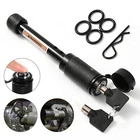 5/8" Heavy Duty Tow Towing 4" Long Hitch Lock Trailer Hitch Pin Locking Receiver Features - 5/8" diameter pin fits 2" x 2" receiver tubes - Protected by a durable black finish - Easy-to-operate, 1/4-turn lock activation - Watertight dust cap prevents internal corrosion - Includes two keys for added convenience - 4.2 inch space available. For inner tube size within 3.5 inch - Please make sure your trailer fits. Description Professional Design to Lock up Your Tow Vehicle and Trailer Like a hitch pin and clip, hitch lock is designed to insert into the fastener hole in the side of a receiver tube in order to hold a ball mount or hitch-mounted accessory in place. While hitch pin does offer sufficient strength for keeping your ball mount firmly attached, which goes one step further. It allow you to lock your ball mount into your trailer hitch, deterring theft and preventing anyone from detaching your trailer at the ball mount and towing away your property without your permission. This hitch lock features a barbell design and comes with a 5/8" pin diameter to fit a 2" receiver tube size. hitch locks are comprised of a pin with two end caps and a round locking mechanism. They are key-operated and activate with a simple 1/4-turn. They also come with a watertight dust cap to keep out the elements and prevent corrosion. For the ultimate in towing security, a hitch lock and coupler lock used together will provide security at both the vehicle-side and trailer-side of your towing setup. It also can be applied to your boat, ATV or camper, so as to keep your possesions more secure with hitch locks. You Deserved One! Package includes: 1 Set x Trailer Hitch Pin Lock
