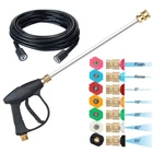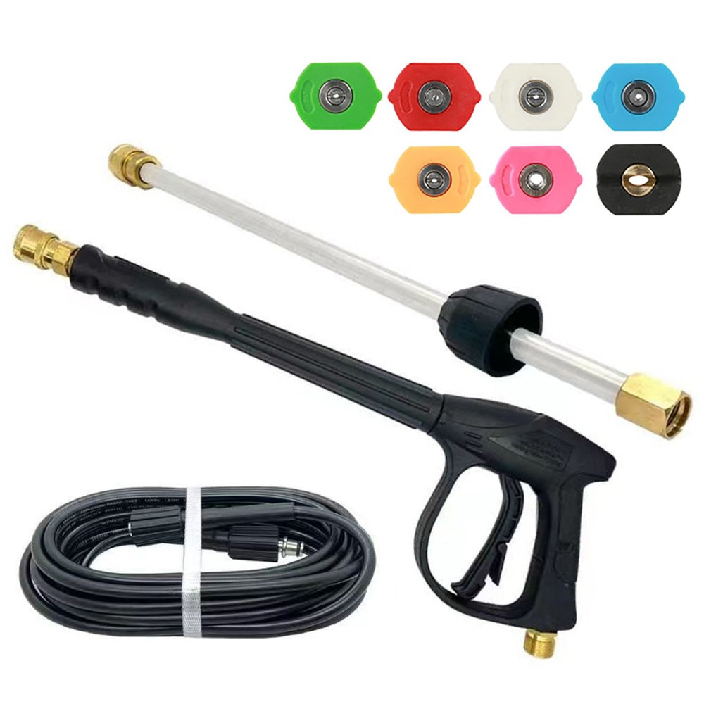 Product Description Description: Versatile Power Washer Kit: This pressure washer gun kit features a 1/4" quick-connect design, making it compatible with a wide range of accessories. Whether you're cleaning your car, driveway, deck or tackling tough stains, the powerful water pressure delivers fast and effective results every time. Adjustable Length: Includes a 17.7" pressure washer gun and a 16.14" extension wand—ideal for reaching tight or high areas. Comes with 7 spray nozzle tips (0°, 15°, 25°, 40°, rinse, soap, soap) for customizable water pressure to suit various cleaning tasks. 10M/32.8FT High-Pressure Hose: Equipped with a 10m/32.8-foot kink-resistant hose for extended reach and hassle-free operation. Long-lasting construction ensures consistent water flow without tangles or interruptions. Universal Compatibility: Designed with an M22-14mm inlet and 1/4" quick-connect outlet, this washer gun kit is compatible with most electric pressure washers, including models from Simpson, Honda, Craftsman, Generac, Briggs & Stratton and more. Specifications: Name: High Pressure Power Washer Set Material: Copper+ABS Color: Black Size: 45×43×17cm/17.71×16.92×6.69inch Gun To Lance Connection: M22-14mm Gun To Hose Connection: M22-14mm Hose Size: 10M Max. Pressure: 5800PSI HOW TO USE : ATTENTION: Not Suitable for Garden Hose. One end of the pressure washer gun is connected to the long wand, and the other end is connected to the high-pressure washer hose. Package Includeds: 1 x Long HP Washer Gun+Wand+7 Nozzle+33ft Hose or 1 x Long HP Washer Gun+Wand+7 Nozzle or 1 x Short HP Washer Gun+Wand+7 Nozzle+33ft Hose or 1 x Short HP Washer Gun+Wand+7 Nozzle or Short HP Washer Gun+Wand or Only Short Washer Gun or Only 7×Nozzle s Payment Shipping Returns Contact Us 1. This is the payment method we can accept: Paypal 2. You can checkout and pay immediately after the auction ends or you complete the purchases. If you need an eBay invoice sent to you by Email, please contact us before making payments. 3. Once the checkout is completed, you will not be able to include any additional purchases. We start to process and fulfill your order once payment is received. New purchases after the checkout will be processed separately. 4. Payments are expected within 4 days after the order is confirmed. Unpaid item (UPI) strike may be filed with eBay upon non-receipt of payment. 1. How much is the shipping & handling (S&H)? Our shipping and handling charges are clearly stated in the Shipping and Payments section of the item page, and we provide Free Shipping for most items. 2. For multiple purchases, the combine shipping discount will be automatically calculated when you check out and pay all of your purchases together. Items checked out separately may not be combined and the combine shipping discount will not be offered automatically. 3. Please make sure the correct Ship-To address is entered before checking out. Once the payment is completed, you may not be able to change the shipping address. We shall not be held responsible for any wrong or undeliverable addresses. 4. We usually ship within 1-2 business days of receiving cleared payment. 1. We put buyer's satisfaction at top priority. If you're not pleased with your purchases, we'll be happy to make an exchange or refund the item total price less Shipping and Handling (S&H) charges within 30 days of your purchases. 2. For any Exchange, Refund or Return, the item must be in its original condition, including the box, packaging, and all the accessories or gifts. 3. We'll provide prepaid return shipping label if the return is a result of our error. Postage reimbursement is offered only on standard mails, and it needs to be approved by our staff prior to returning. 4. Please allow up to 7 business days for returns to be processed. 5. Shipping and Handling (S&H) charges are not refundable. 1. Customer satisfaction is very important to us and our feedback rating reflects this satisfaction. If you have any question or concern, please contact us via eBay message. 2. We respond to all eBay messages as quickly as possible. Though your question will usually be answered very soon, please allow us up to one business day before you start thinking your message is neglected or the reply is avoided, because there would be time difference, non-working hours or public holidays that have prevented us from making an instant response. Payment 1. This is the payment method we can accept: Paypal 2. You can checkout and pay immediately after the auction ends or you complete the purchases. If you need an eBay invoice sent to you by Email, please contact us before making payments. 3. Once the checkout is completed, you will not be able to include any additional purchases. We start to process and fulfill your order once payment is received. New purchases after the checkout will be processed separately. 4. Payments are expected within 4 days after the order is confirmed. Unpaid item (UPI) strike may be filed with eBay upon non-receipt of payment. Shipping 1. How much is the shipping & handling (S&H)? Our shipping and handling charges are clearly stated in the Shipping and Payments section of the item page, and we provide Free Shipping for most items. 2. For multiple purchases, the combine shipping discount will be automatically calculated when you check out and pay all of your purchases together. Items checked out separately may not be combined and the combine shipping discount will not be offered automatically. 3. Please make sure the correct Ship-To address is entered before checking out. Once the payment is completed, you may not be able to change the shipping address. We shall not be held responsible for any wrong or undeliverable addresses. 4. We usually ship within 1-2 business days of receiving cleared payment. Returns 1. We put buyer's satisfaction at top priority. If you're not pleased with your purchases, we'll be happy to make an exchange or refund the item total price less Ship