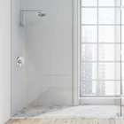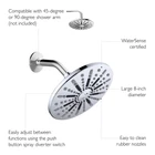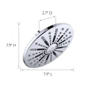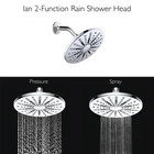 The 582718-PC Ian Modern 8-inch 2-Function Shower Head Featuring a Push Button Spray Diverter for Bathroom adds a modern touch to your shower with its sleek shape, simple design and modern polished chrome finish. This round, 2-function shower head features a push button spray diverter that swiftly changes between a spray or pressure shower while offering dual-mount compatibility for a 45- or 90-degree shower arm. Its convenient, easy to clean nozzles help you cut back on cleaning time. Add a matching shower trim and tub spout from the plumbing collection. Designed and manufactured by , the trusted source for quality lighting, hardware, plumbing, kitchen, and bath products for every taste and budget. Large 8-inch diameter showerhead in a modern polished chrome finish Use the simple push button spray diverter located in the center of the fixture to switch between a spray or pressure shower with 45- or 90-degree shower arm (not included) Convenient easy to clean rubber nozzles