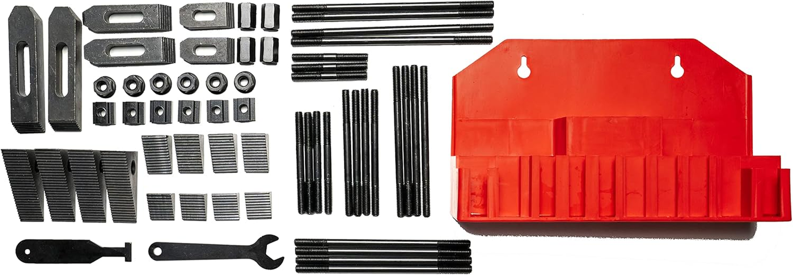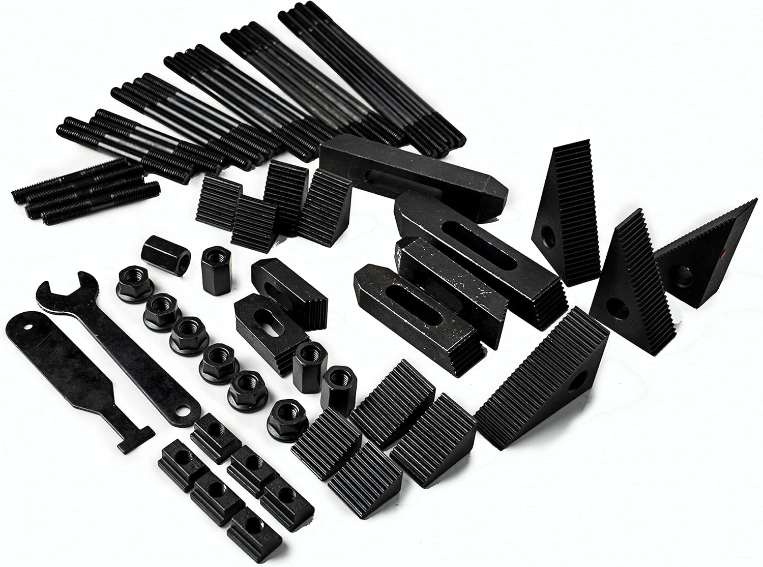 Made of high quality casting steel for long life and increased durability. All parts heat treated. Each clamping kit includes: studs step block pairs T-nuts flange nuts coupling nuts and end hold-downs, T-slot cleaner and Tightening Wrench. 7/16 Table Slot,3/8- 16 Stud Size Includes 4 each of 3", 4". 5", 6", 7", 8" studs, 4 coupling nuts, 6 flanged nuts, 6 forged steel step clamps, 6 t-nuts, 12 steel step blocks and 1 wall rack,1PC Each T-slot cleaner and Tightening Wrench Product description Introducing the t-slot Nut from Sp1stopmall - the perfect addition to your clamping kit! Our hold down set includes various clamps that are designed to fit into t-slots of a mini mill milling machine, allowing you to effortlessly secure your workpiece in place. With end nuts, block nuts, angle couplings and t-nuts tool Our clamping set is suitable for all your metalworking needs. Constructed from machinist metal, t-slot nuts are compatible with 7/16" t-slots, making them a versatile addition to your arsenal of metalworking tools. Whether you're working with steel bolts or need to clamp down on a specific part, our clamp kit has got you covered. Our t-slot nuts are perfect for use with a 7/16 bridgeport or a 3/8-16 stud, giving you a secure fit every time. With a speed drill press stop, you can rest assured that your workpiece will remain in place throughout the entire machining process. So whether you're a professional machinist or hobbyist, make Sp1stopmall your go-to for all your clamping and machining needs. 58Pc T-Slot Clamping Kit Mill Machinist Set With T-slot cleaner and Tightening Wrench (7/16 Table Slot 3/8-16 Stud Size) About this item Made of high quality casting steel for long life and increased durability. All parts heat treated. Each clamping kit includes: studs step block pairs T-nuts flange nuts coupling nuts and end hold-downs, T-slot cleaner and Tightening Wrench. 7/16 Table Slot,3/8- 16 Stud Size Includes: 4 each of 3", 4", 5", 6" ,7", 8" studs(3/8-16) 4 coupling nuts 6 flanged nuts 6 forged steel step clamps 6 t-nuts(7/16) 12 steel step blocks 1PC Each T-slot cleaner 1PCTightening Wrench 1 wall rack 58Pc T-Slot Clamping Kit Mill Machinist Set With T-slot cleaner and Tightening Wrench (7/16 Table Slot 3/8-16 Stud Size) 58Pc T-Slot Clamping Kit Mill Machinist Set With T-slot cleaner and Tightening Wrench (7/16 Table Slot 3/8-16 Stud Size) 1/2 Table Slot 3/8- 16 Stud Size All Steel Blocks and Clamps (Deluxe Clamping Kits) Product Information Each Set Contains: 24 Studs: 4 each of length: 3"-4"-5"-6"-7"-8" 6 T-Nuts to fit your machine 6 Flange Nuts 4 Coupling Nuts 4 Flanged Nuts 6 Step Blocks 6 Step Clamps 1 Each T-slot cleaner and Tightening Wrench 1 Plastic Holder 58Pc T-Slot Clamping Kit Mill Machinist Set With T-slot cleaner and Tightening Wrench (7/16 Table Slot 3/8-16 Stud Size) 58Pc T-Slot Clamping Kit Mill Machinist Set With T-slot cleaner and Tightening Wrench (7/16 Table Slot 3/8-16 Stud Size)