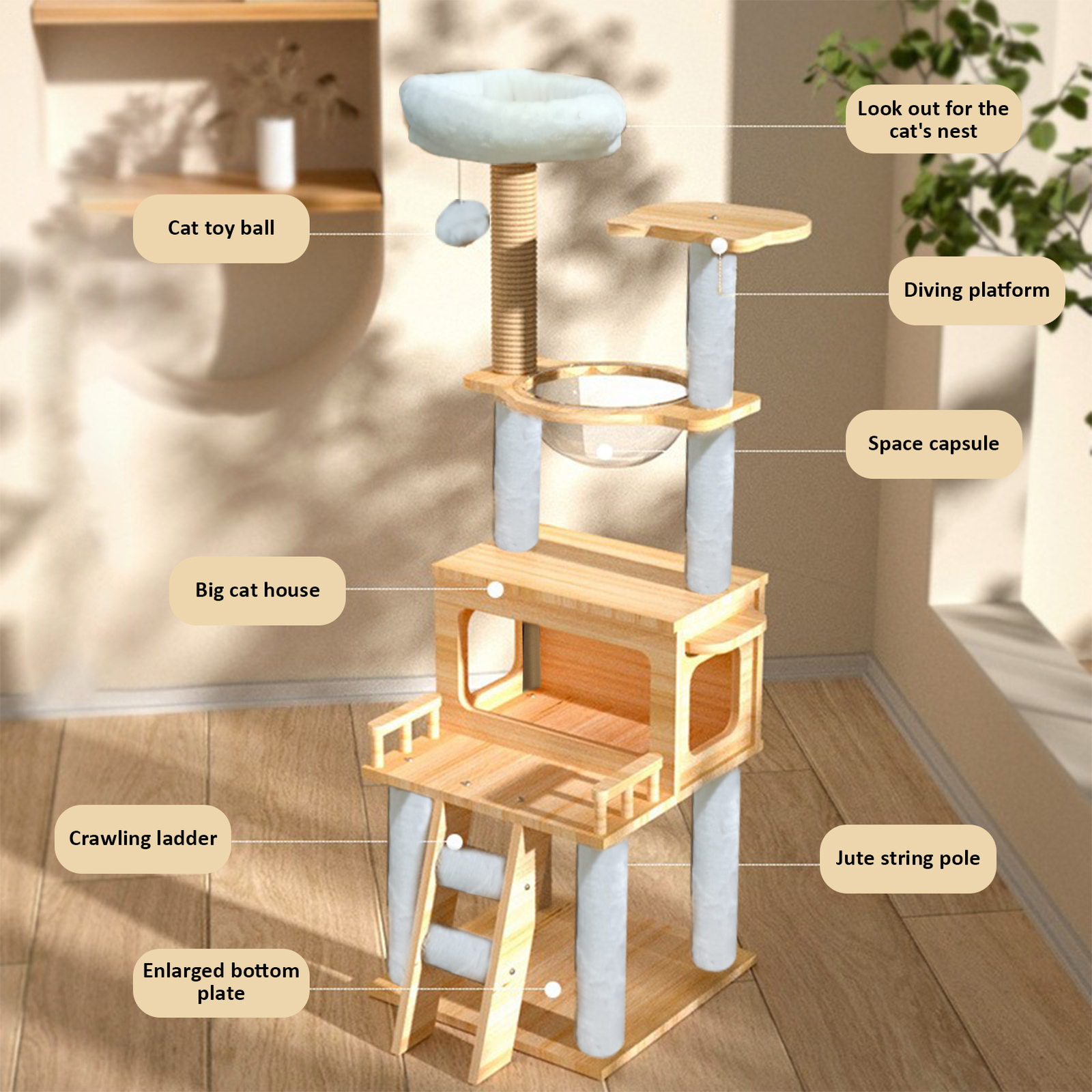 If you are interested in the product, pls send the zip code to us , then we will give you the best price !! Sturdy Support: Crafted with robust MDF, this cat tree promises enduring stability and a sleek, modern design, ensuring a safe and stylish haven for your large feline friends.\nTop Perch: Designed with a top perch for panoramic views, multiple levels for exploration, and a cozy condo for restful retreats, this cat tree is a haven for large cats.\nCats Stay Active: With sisal rope scratching post wraps, this tree meets your cat's instincts and keeps them entertained, ensuring claws stay healthy.\nCozy Relaxation Station: Designed for large cats, this tree features a 360-degree clear spaceship hammock, providing a secure and elevated resting place where your cat can swing and stretch in comfort.\nClimbing Haven for Felines: Designed with multiple levels, this cat tree provides a variety of scratching posts at different heights, ensuring your large cat can stretch, scratch, and stay active.\n\nThis cat tree is perfect for large cats! With stability and durability, your pet will have a safe place to play and climb. The condo is great to snooze and hide, while the sisal rope scratching post keeps cat claws healthy and entertained. The scratching posts give your furry friend plenty of options to scratch, while the comfortable and relaxing resting place is perfect for your cat to rest after playtime.\n\nSpecification Product Name: Cat Tree Tower Material: Wood, Sisal Rope, Hardware, Etc. Product Size: about 147x50x50cm/57.87x19.69x19.69 inches Product Weight: about 13.5kg Suitable For: Cats Application Scene: Indoor, Outdoor\nPack List: 1 x Cat Tree Tower Note: Due to different lighting and screen settings, the item color may be slightly different from the picture. Due to different manual measurements, please allow a 1-2cm difference in size. Shipping Policy 1. We ship to your eBay adress. Each package will be shipped by Royal mail without tracking number. 2. Please check your shipping address carefully before checkout, it can't be changed if order completed. 3. Ship within 1 business day once payment completed. Orders placed on weekend will be shipped within 2 days. Seriously promise: Refund or resend will be offered if item still not arrive in 8 business days. Just send us an email ,we will give you a satisfied solution as soon as possible. Payment 1.We accept PayPal only. 2.NOTE: Payment should be sent within 4 (FOUR) days of auction closing. Or unpaid dispute will be filed for closing auction. Please contact us if you have any questions of payment procedures Returns Policy 1. Customer satisfaction is our top goal. We believe our items are so outstanding. All products are quality checked. They are new and in good condition when shipped to our customers. We are convinced you will be happy with your Purchase. 2. If product is defective or damage upon arrival, or wrong product shipped, please contact us immediately. Returns accepted within 30 days of delivery date and item must be in original new condition, not worn or altered in any way with attached tags & wrap. Otherwise deal is final. Return shipping must be paid by buyer. 3. Please contact us first if you have any problems/questions/concerns. We will be happy to resolve any issues you may have in a cordial and friendly manner. Work Time Our working time: Monday- Saturday 9:00A.M-12:00A.M 13:30P.M-6:00P.M Feedback You will receive our positive feedback as soon as you pay for your item. Your better comments will be an encouragement for us to offer the better quality and the better service in future. If you are not satisfied with them, please contact us first via Ask a Question or via Contact Seller. Your messages will be answered within 1-2 business day. We shall try our best to solve your problem to your satisfaction.