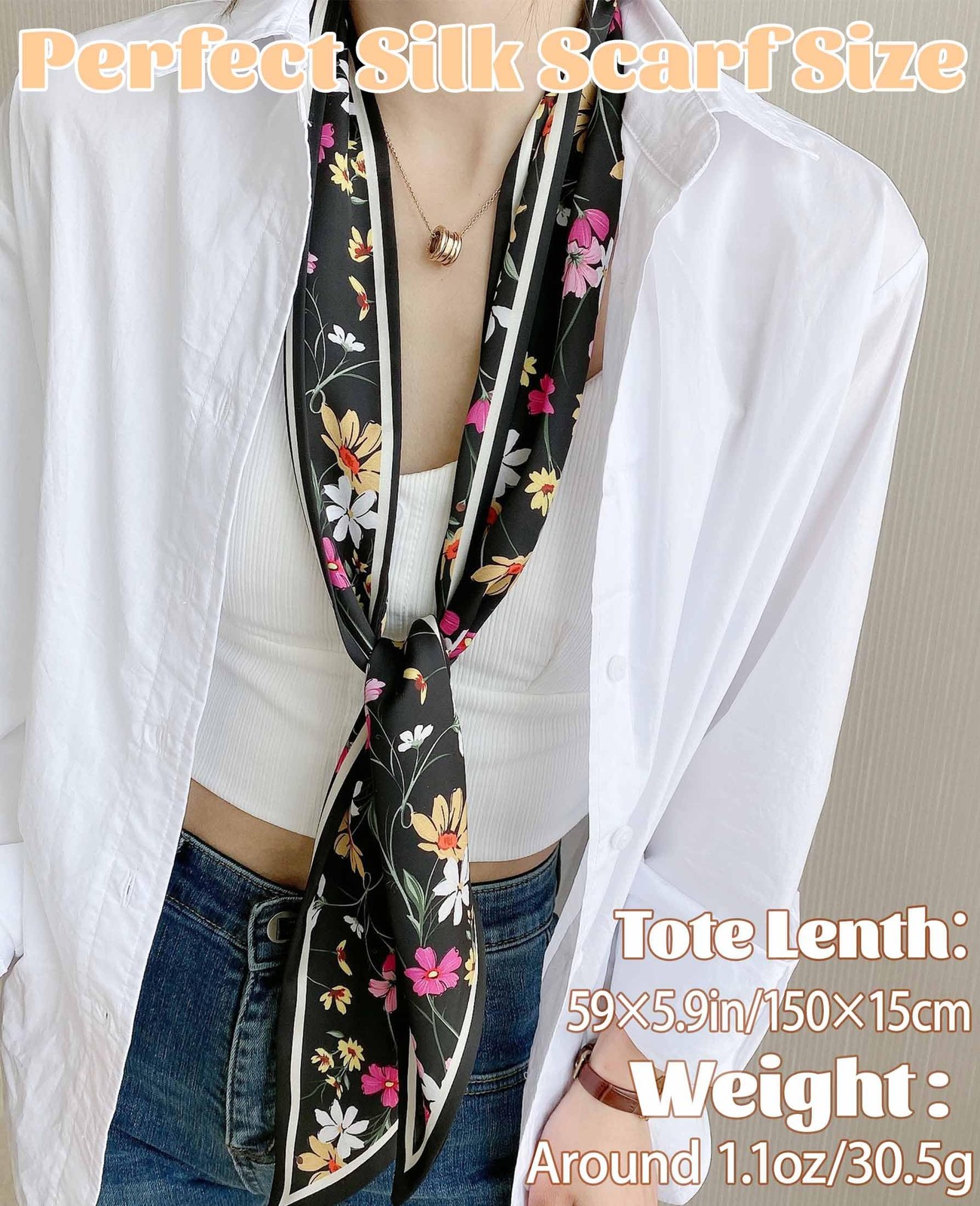 's High Quality Simulation Silk Printing Scarf Feature Color: each pack has its unique color - dyeing with special solid color treatment, absolutely not fade Soft and light simulation silk scarves Lead and nickle free. No Fade You will get a variety of quantities depending on your choice,elegant Scarf for your bag handle,purse,hair,and other daily use Material:Made of 1OO% Quality Polyester Satin Silk,good touch feeling,soft,smooth and shiny. Square bandana practical and easy-cleaning Nice Size:59” x 5.9”/(150 x 15cm).Weight:Around 0.98oz/28g. Funtion:This satin headscarf is the perfect accent to any outfit.silk scarves can be worn around your neck, as flight attendant scarf,chic neck tie, hair scarf, head tie band,waist band, handbag accessory, hat decoration,hand band, wrist band,etc Diverse Styles:Silky, soft, smooth and shiny. Various ingenious designed and elaborately printed patterns available, colorful and gorgeous, delicate and beautiful- Fit for women in all ages. You will be the distinctive one in the crowd. Occasions:Multifunction use Midure scarf,You can use it to match your neck, handbag,jeans,hot pants,hair,scarf bracelet or as a gift for your good friends,mother,daughter or other good friends on birthday.