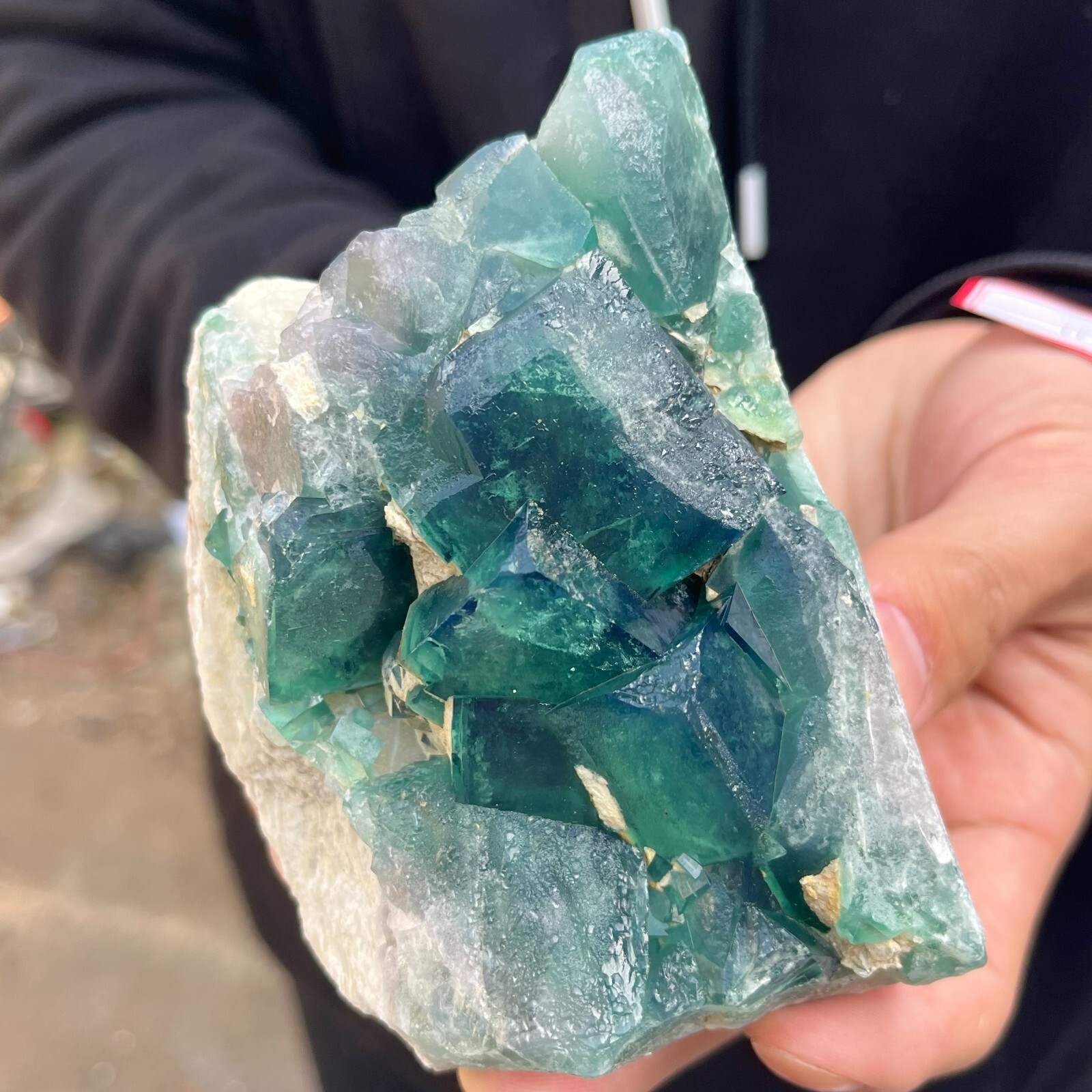 $ 1.47Transparent blue-green cubic fluorite crystal specimen from China 9.29LB