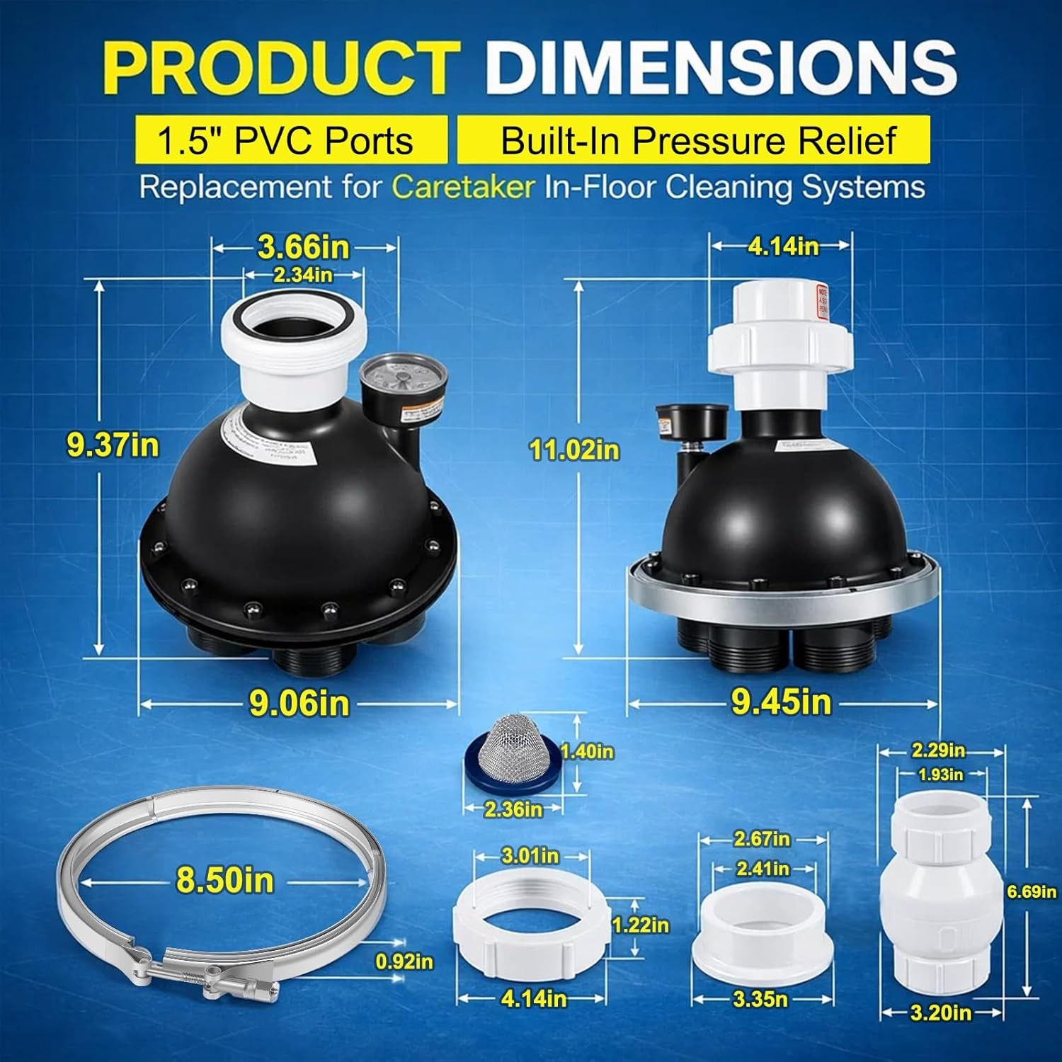 Feature 【Perfect OEM Replacement – 5-9-2000 complete 5-port water valve rebuild kit 】:This 5-Port Water Valve is a direct-fit replacement for Caretaker 5-9-2000, 592000, CT592000, CTA592000, ensuring 100% compatibility with Caretaker In-Floor Cleaning Systems. Engineered to restore factory water-flow sequencing for stronger, more efficient pool cleaning. 5-9-2000 Complete 5-Port Water Valve Assembly for 1-1/2" Ports – Full Rebuild Kit with Pressure Relief Valve, Top Lid, Gears, O-Rings, 1.5" Pipe Unions - Fit for Zodiac Caretaker replacement parts kit Feature 【Perfect OEM Replacement – 5-9-2000 complete 5-port water valve rebuild kit 】:This 5-Port Water Valve is a direct-fit replacement for Caretaker 5-9-2000, 592000, CT592000, CTA592000, ensuring 100% compatibility with Caretaker In-Floor Cleaning Systems. Engineered to restore factory water-flow sequencing for stronger, more efficient pool cleaning. 【Engineered for 1.5-inch Schedule 40 PVC Plumbing 】:Designed to install directly into 1.5" Schedule 40 PVC pipe, the standard plumbing size for Caretaker systems. This ensures:✔ Leak-free sealing.✔ Proper water pressure distribution.✔ Full compatibility with existing pool plumbing.A must-have precision fit for homeowners replacing old valves. 【 Ideal for Residential Pools, Small to Medium Pools, and Spas】:Specially engineered for standard residential pools, this valve provides optimal performance for: Small pools. Medium-size pools. In-ground spas. Light commercial pools.Its stronger flow efficiency makes it ideal even for lower horsepower pumps. 【Complete Water Valve Rebuild Kit Included】:Comes with 1.5" valve top, 5-port center plate, full gear kit assembly, O-ring kit, stainless steel cup strainer, band clamp with nut, 1.5" bottom plumbing plate, 2 x 1.5" valve unions, and a pressure relief valve—a full rebuild kit with everything needed for a complete service, no additional parts required. 【Fixes the Most Common System Problems】:This complete 5-port rebuild valve is engineered to eliminate the most common in-floor cleaning problems—weak or stuck pop-up heads, low pressure in cleaning zones, valves not rotating, debris clogging, and overpressure shut-offs. Corrosion-resistant, pool-grade materials, it delivers stronger sealing, smoother operation, A single installation typically restores full system performance and reduces future maintenance and replacement frequency. 【Enhanced Water Distribution for Stronger Pop-Up Cleaning Performance】:The improved 5-port diverter plate maximizes water flow to the cleaning heads, giving each zone stronger pressure. This results in: Faster debris removal More powerful pop-up action Better floor circulation More effective dirt sweeping.This upgrade restores your pool’s cleaning performance to like-new condition. 【Heavy-Duty Gear Mechanism – Smoother, Stronger, and Longer-Lasting Rotation】:Common issues in old valves include:✘ Valve not rotating.✘ Stuck in one zone.✘ Weak or partial movement.This valve uses a reinforced gear assembly, ensuring smooth sequential rotation and durable long-term operation—even under high pressure. 【Integrated Pressure Relief Valve – Protects the System from Overpressure】:Overpressure is the #1 cause of failures in in-floor cleaning systems.This model includes an upgraded factory-spec Pressure Relief Valve, which:✔ Prevents pump strain.✔ Protects cleaning heads.✔ Prevents system damage.✔ Extends the lifespan of your pool equipment.A must-have safety component for all in-floor systems 【 Easy Maintenance – Cleanable Stainless Steel Dome Strainer for Long-Term Reliability】:The built-in stainless dome strainer prevents debris from entering the valve assembly.Simply remove and clean periodically to maintain smooth rotation and prevent clogging—significantly reducing long-term maintenance costs. 【 Warranty Included for Peace of Mind 】: All products come with a 12-month warranty against quality-related issues and a 30-day money-back guarantee, ensuring that you can buy with confidence. Our dedicated customer service team is ready to assist you. Item Specifics Indoor Outdoor Usage Outdoor Product Dimensions 2 x 2 x 2 inches Item Weight 1.5 Inches Warranty 1 Number Of Items 1 Exterior Finish Stainless Steel and Plastic Fitment 1-1/2" Ports Manufacturer Part Number 5-9-2000 OEM Part number 5-9-2000 Brand LUAUTO Full Rebuild Kit with Pressure Relief Valve, Top Lid, Gears, O-Rings, Pipe Unions 1.5" Color Black Special Feature Lightweight Type Complete 5-Port Water Valve Assembly Pool Type Zodiac Caretaker Custom Bundle No Bundle Description No Payment 1. Payment methods accepted: Payoneer . Our Payoneer account allows you to pay by credit card, debit card and your paypal balance. 2. We ship items to Your Ebay address .Please make sure your Ebay address is correct before you pay, cause it cannot be changed once the order shipped out. 1. All major credit cards are accepted through our secure payment processor Paypal. 2. We ship items to Your Paypal address .Please make sure your Paypal address is correct before you pay, cause it cannot be changed once the order shipped out. 1. All major credit cards are accepted through our secure payment processor Paypal. 2. We ship items to Your Paypal address .Please make sure your Paypal address is correct before you pay, cause it cannot be changed once the order shipped out. 1. All major credit cards are accepted through our secure payment processor Paypal. 2. We ship items to Your Paypal address .Please make sure your Paypal address is correct before you pay, cause it cannot be changed once the order shipped out. 1. All major credit cards are accepted through our secure payment processor Paypal. 2. We ship items to Your Paypal address .Please make sure your Paypal address is correct before you pay, cause it cannot be changed once the order shipped out. 1. All major credit cards are accepted through our secure payment